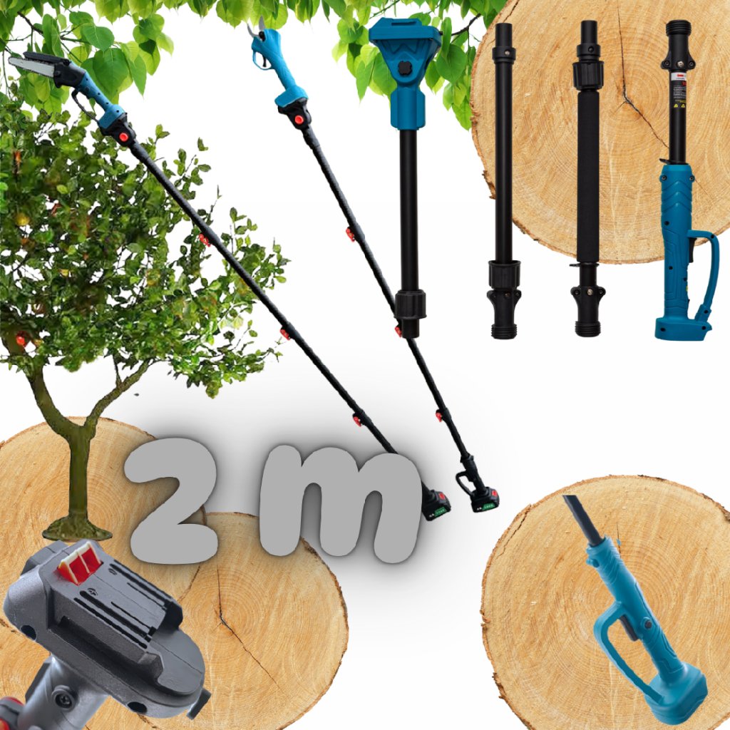 Dosáhni na vyšší větve bez žebříku! Rozkládací 2m tyč + lehká aku sada pro rychlý a bezpečný prořez stromů i keřů.