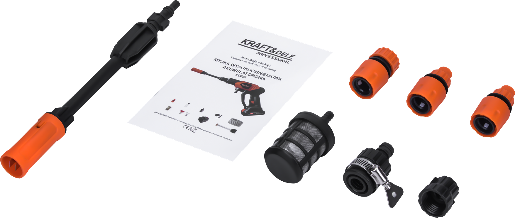 Aku tlaková myčka 20 V – 60 bar, 160 l/h, 2× 4 Ah Mega Výbava