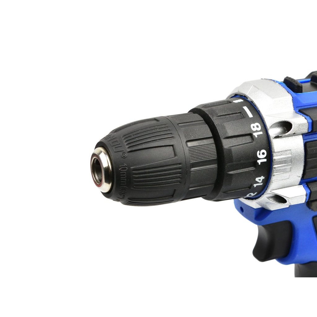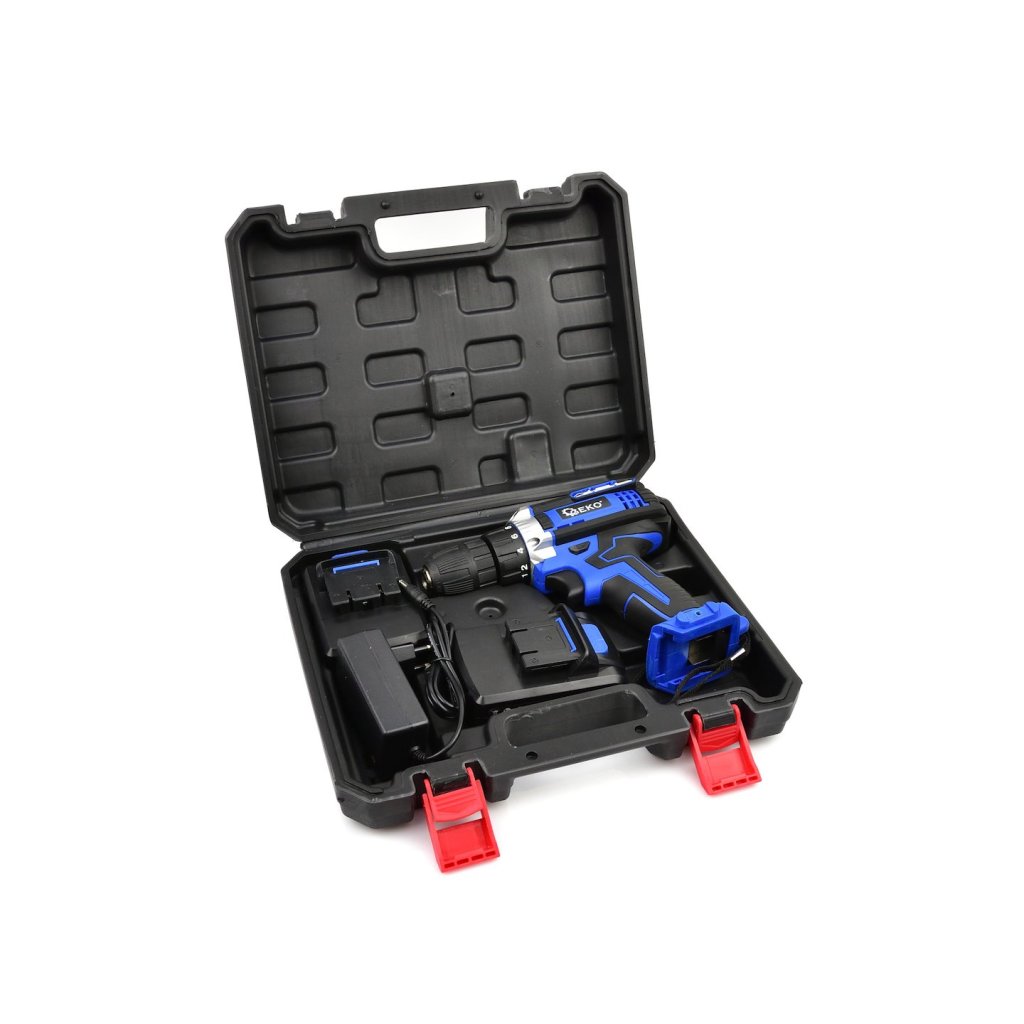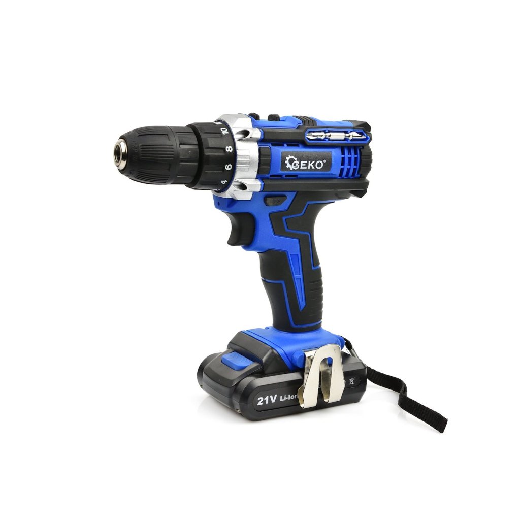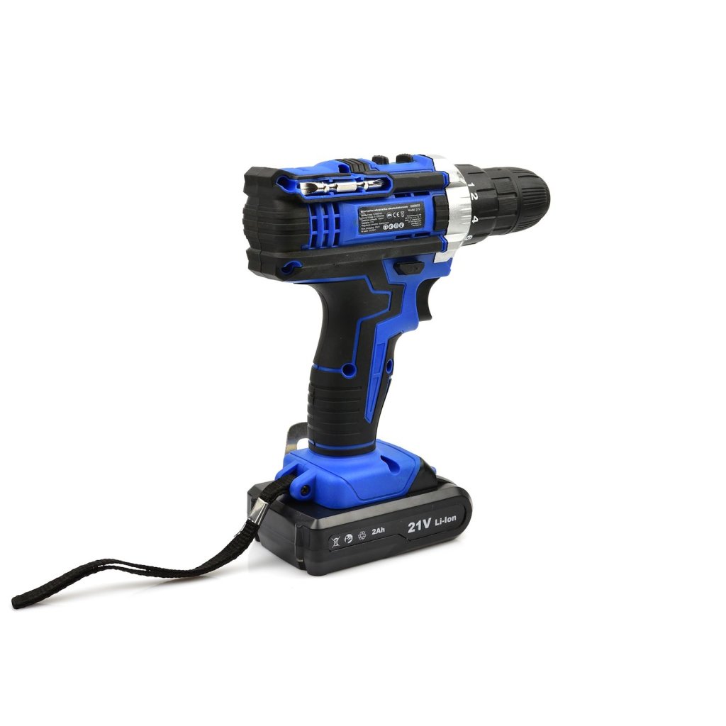 Akumulátorová vrtačka-šroubovák 21 V. Nástroj je ideální pro vrtání do různých materiálů a pro zašroubování a vyšroubování šroubů, vrutů, plechových šroubů atd. Součástí sady jsou dvě baterie 2 Ah, nabíječka a praktický plastový kufřík.