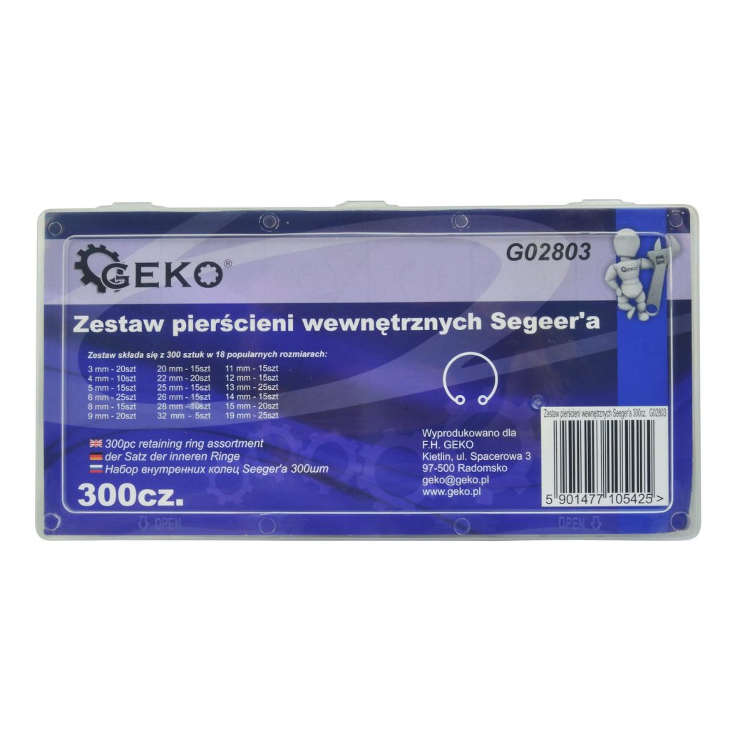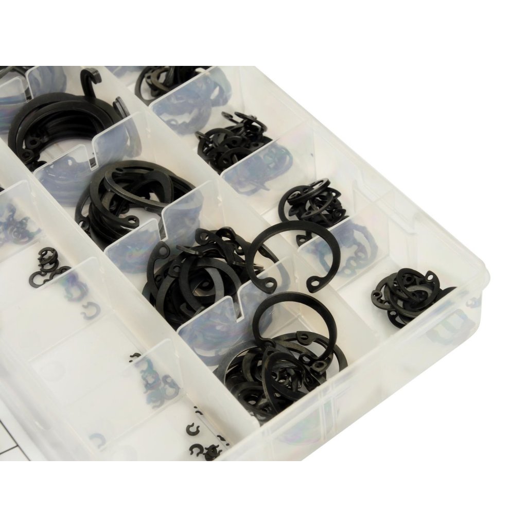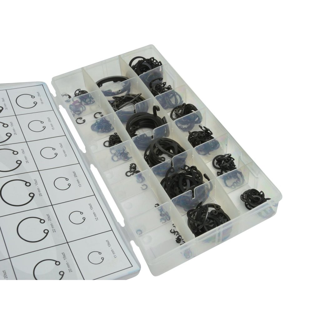 Sada 300 vnitřních kroužků Seeger ve velikostech 3–32 mm.
