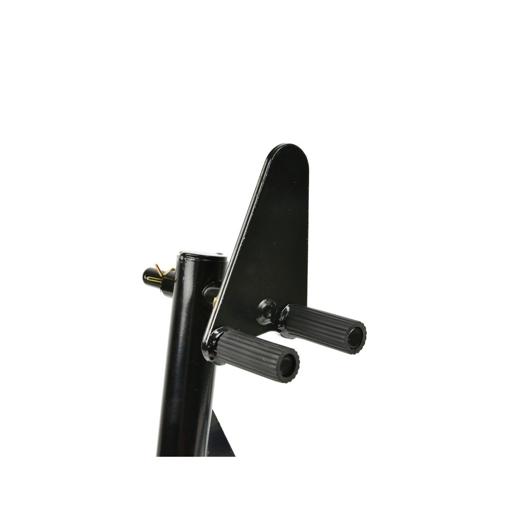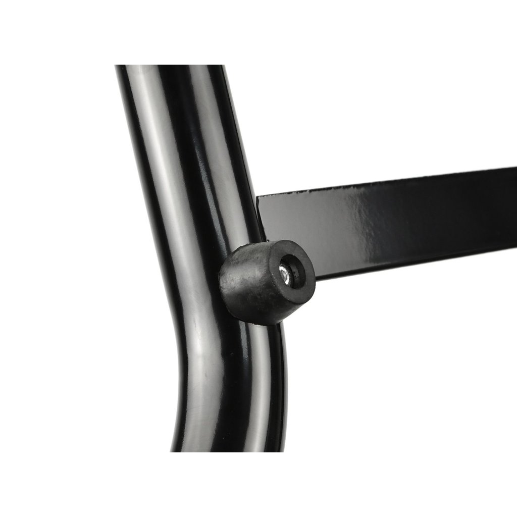 Zesílený stojan na motocykl pod přední nápravu. K výrobě byla použita ocelová trubka o průměru 32 mm s práškovým lakováním. Zesílená konstrukce stojanu navíc zaručuje stabilní a bezpečné zvedání motocyklu. Kolečka jsou vyrobena z vysoce kvalitního ABS plastu.