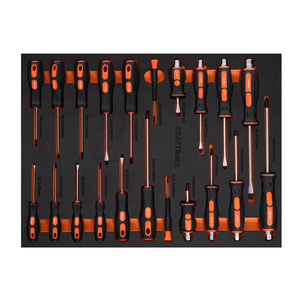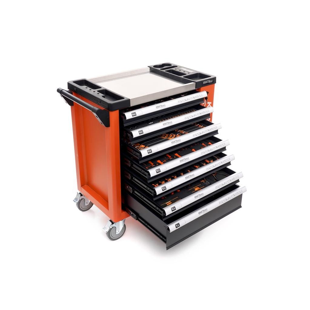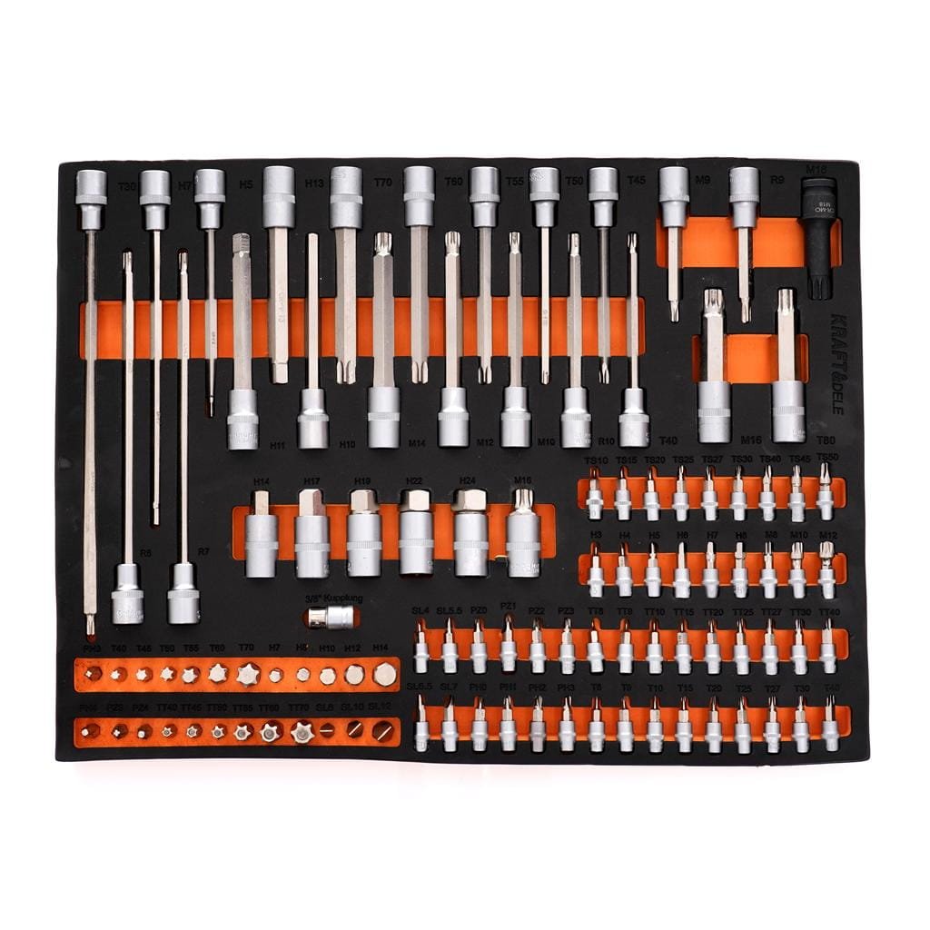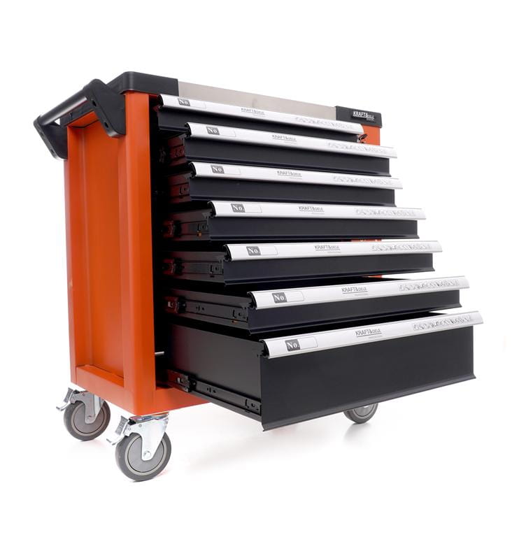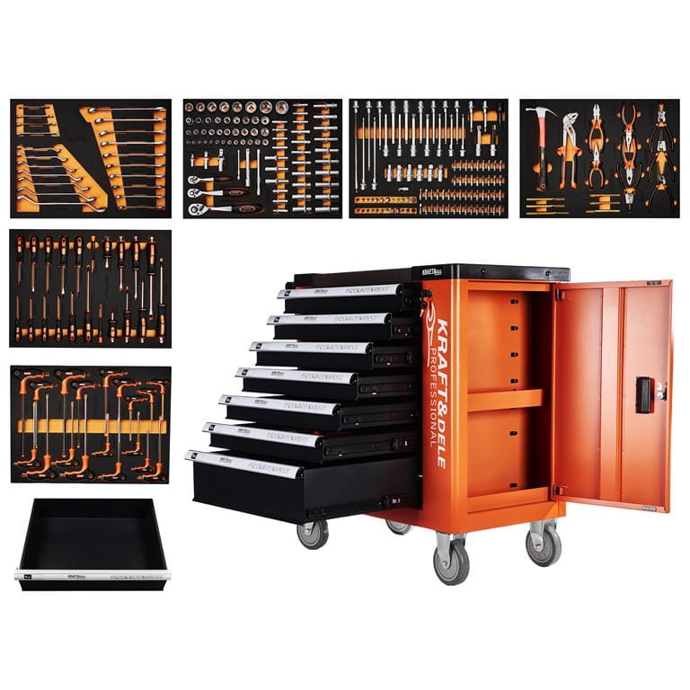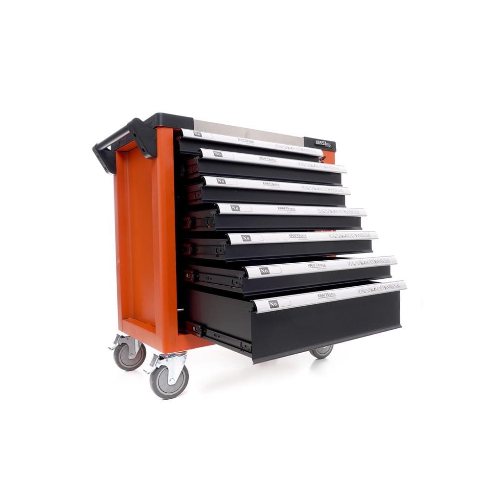 - Pojízdný vozík s nářadím 258 ks – Kraft&Dele KD1067, 7 zásuvek, uzamykatelný – výkon, přesnost a pohodlné ovládání