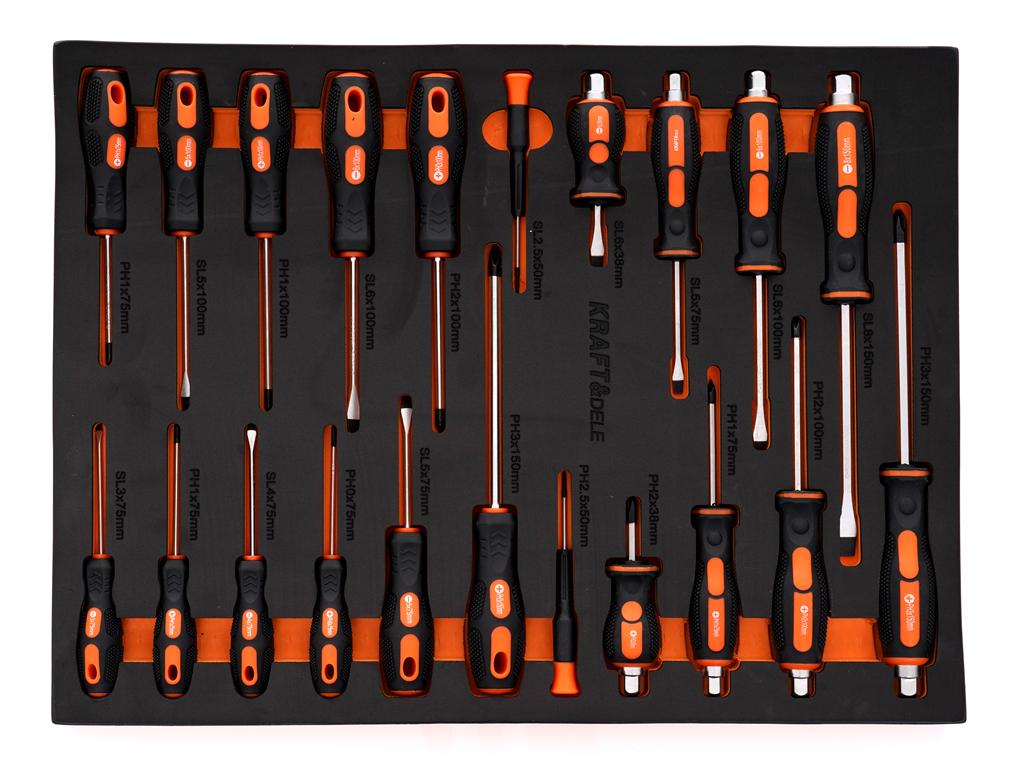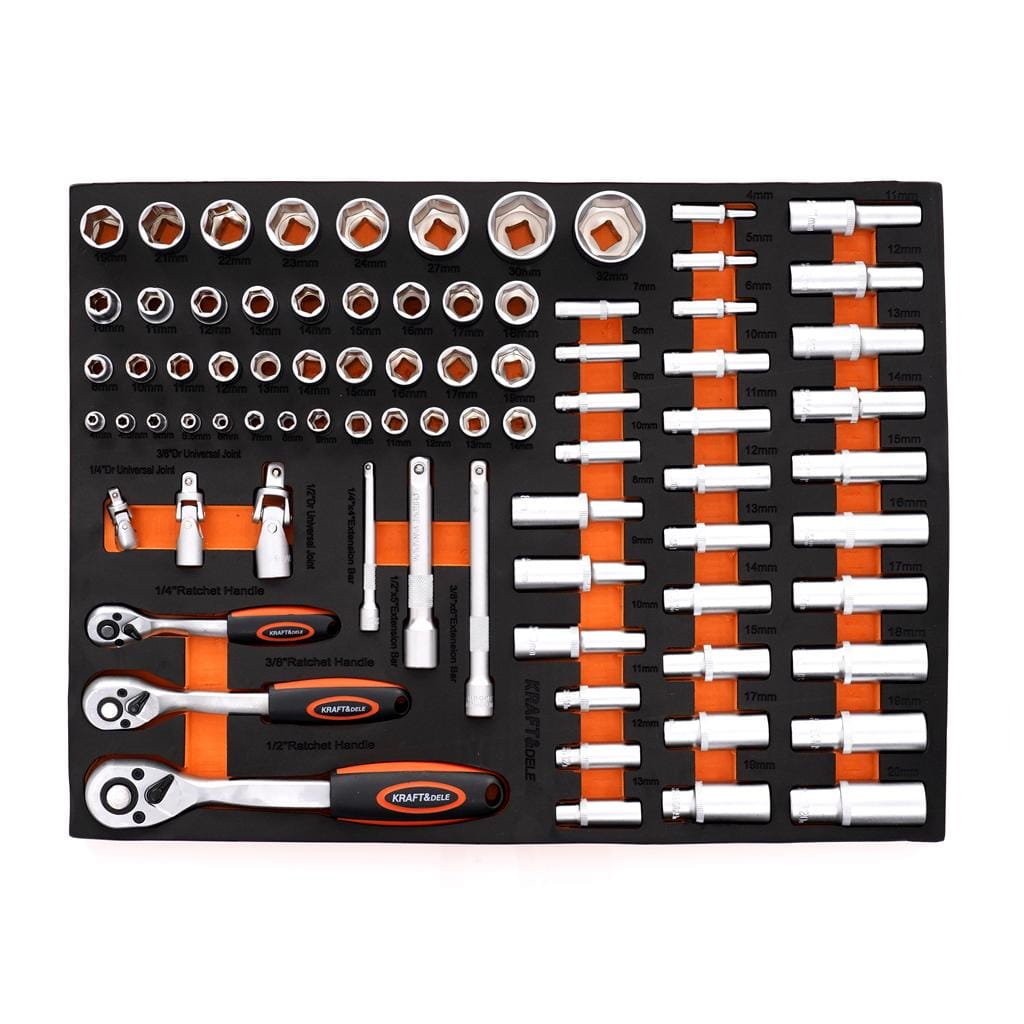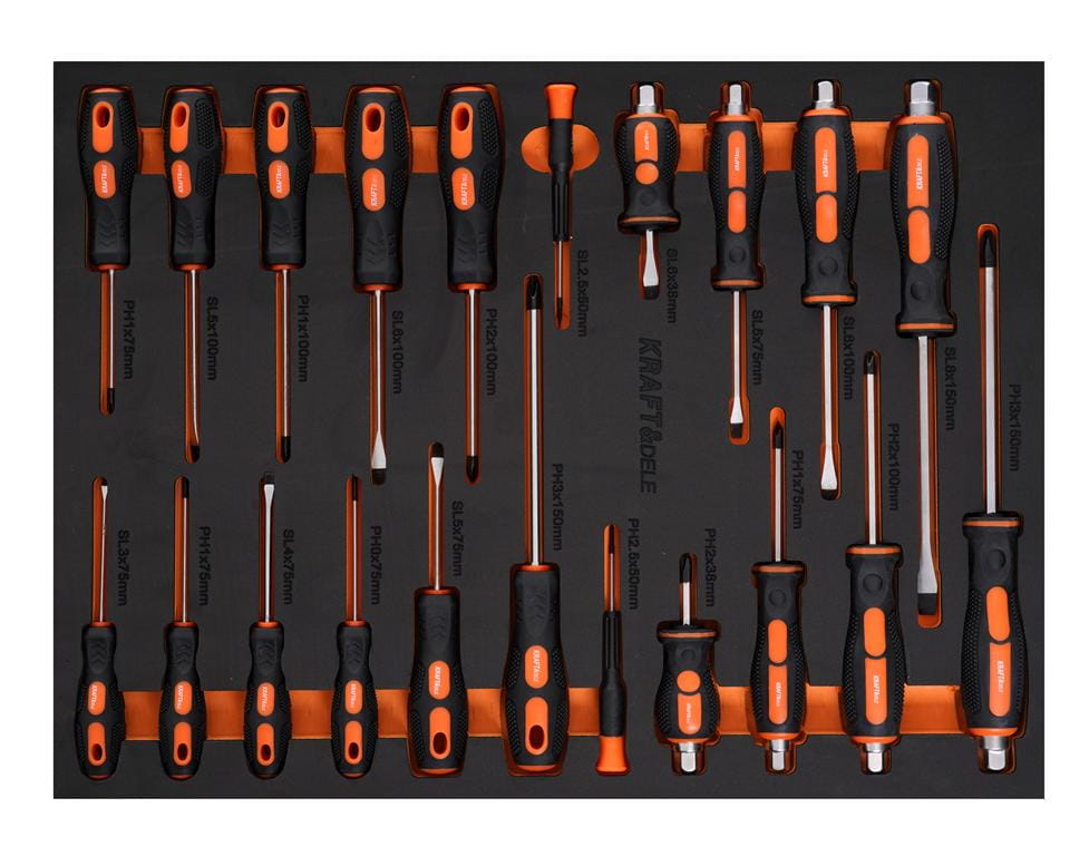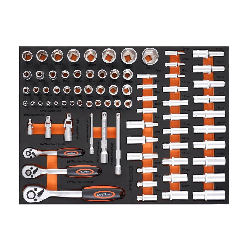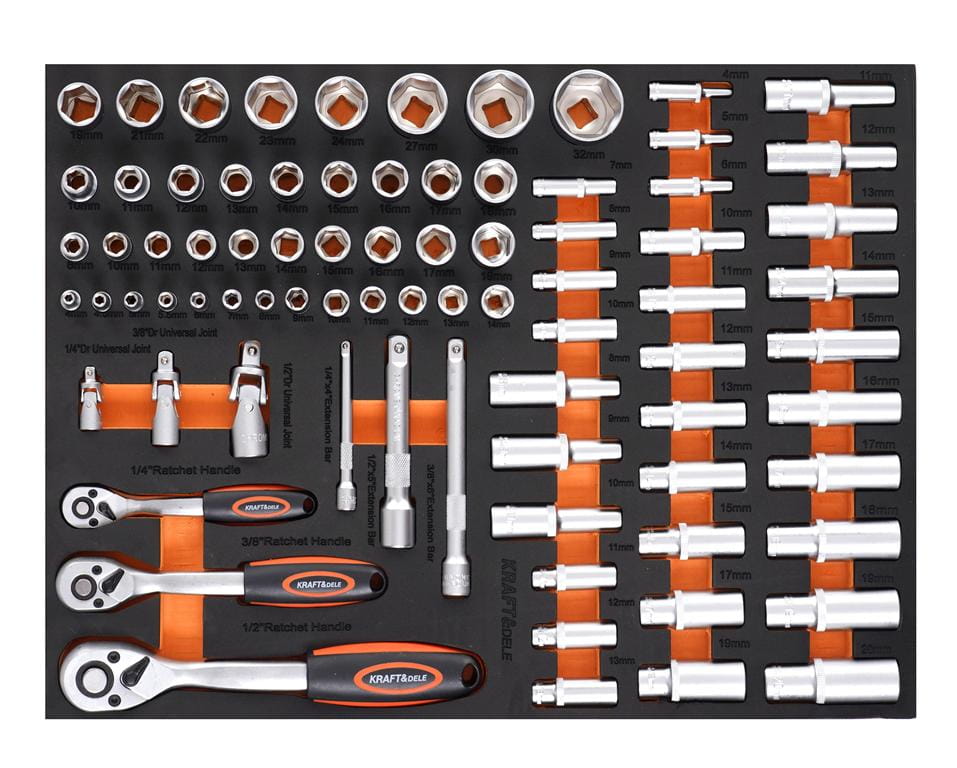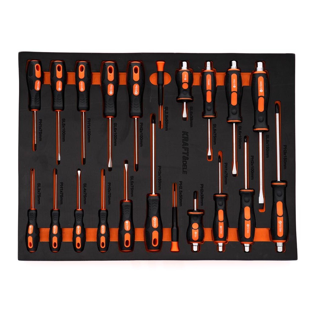 - Pojízdný vozík s nářadím 258 ks – Kraft&Dele KD1067, 7 zásuvek, uzamykatelný – výkon, přesnost a pohodlné ovládání