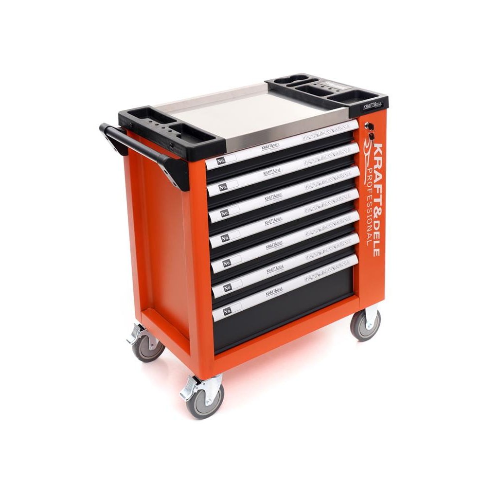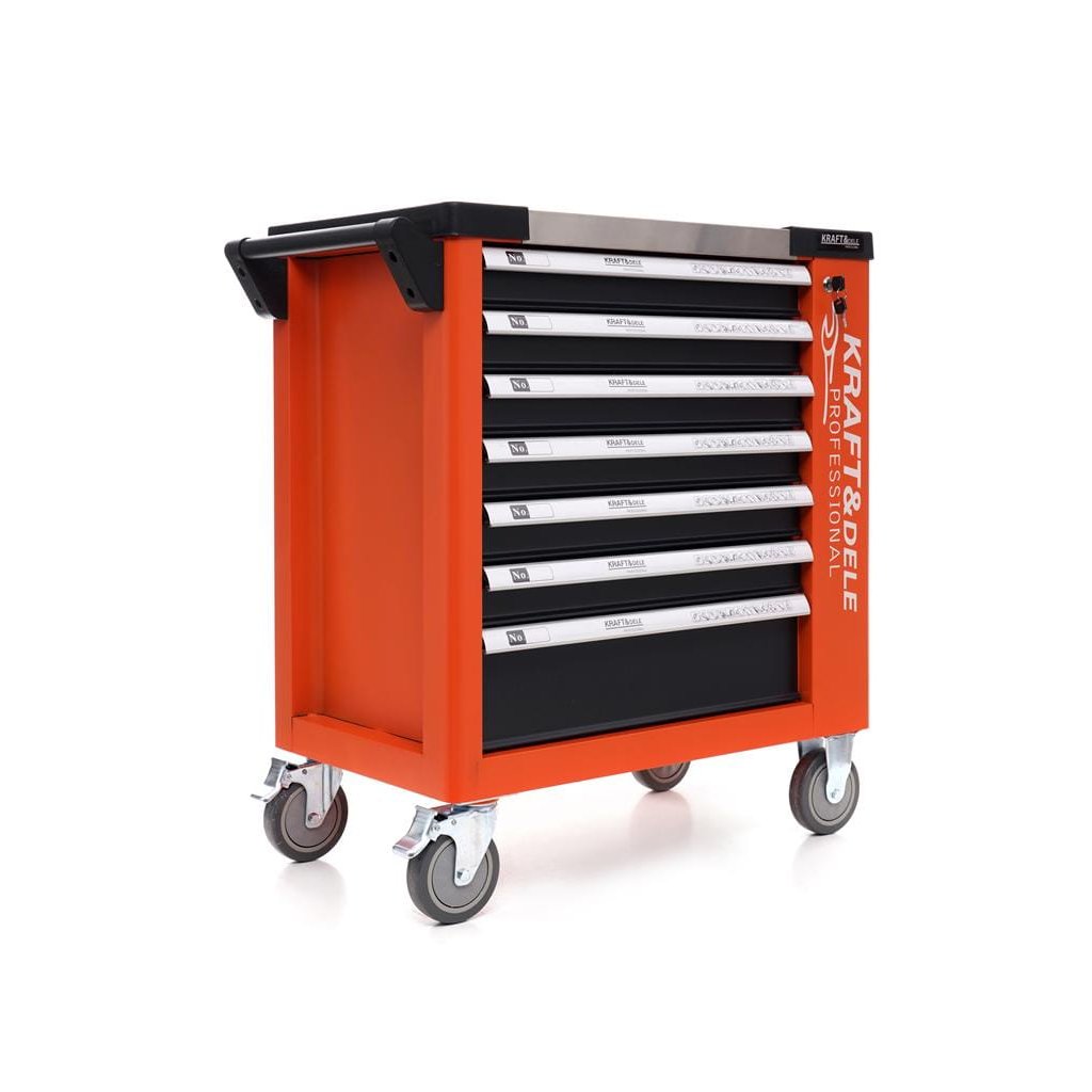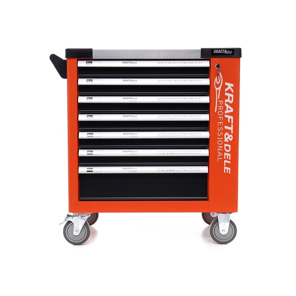 Pojízdný vozík s nářadím 258 ks – Kraft&Dele KD1067, 7 zásuvek, uzamykatelný