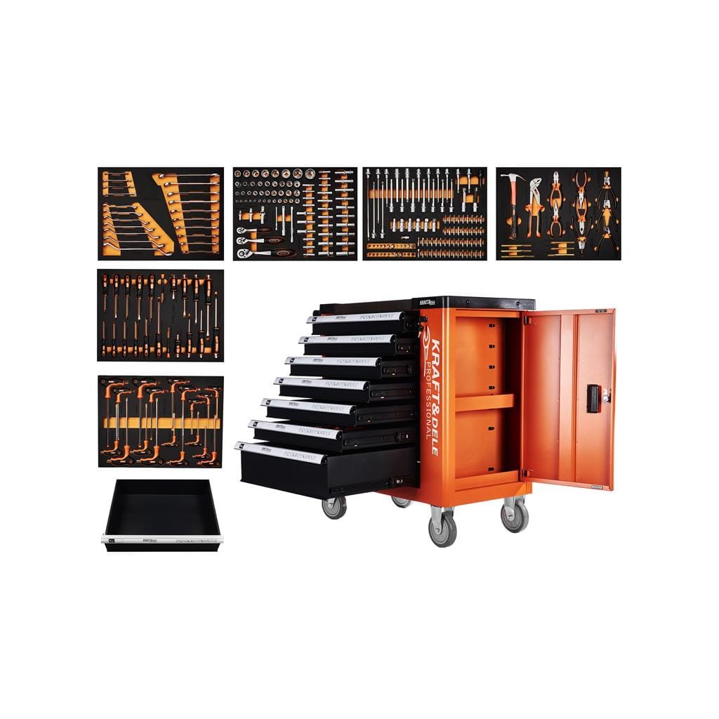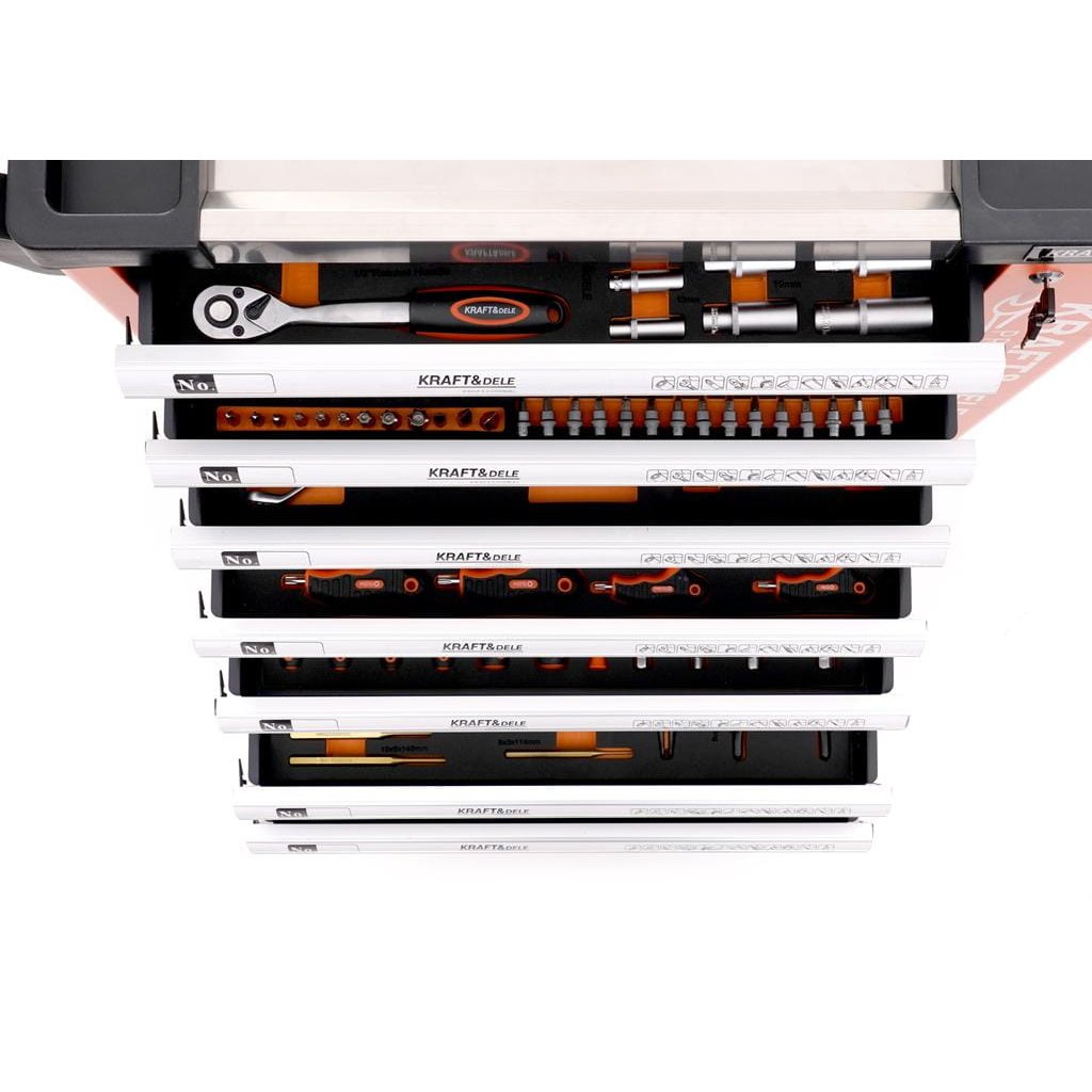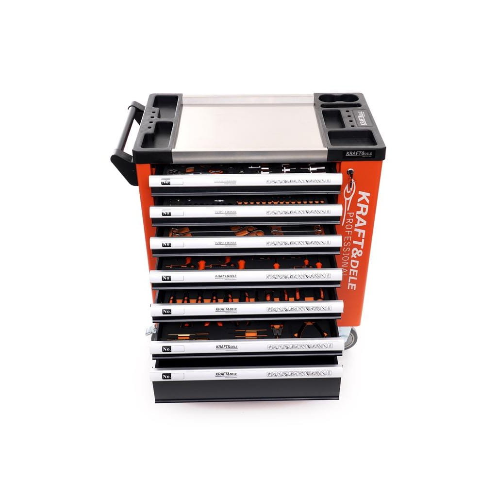 Pojízdný vozík s nářadím 258 ks – Kraft&Dele KD1067, 7 zásuvek, uzamykatelný