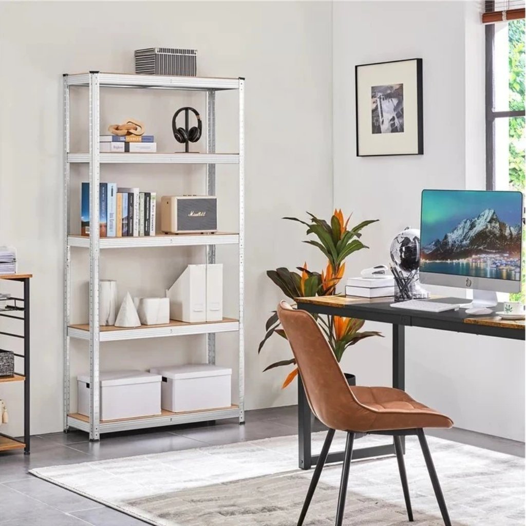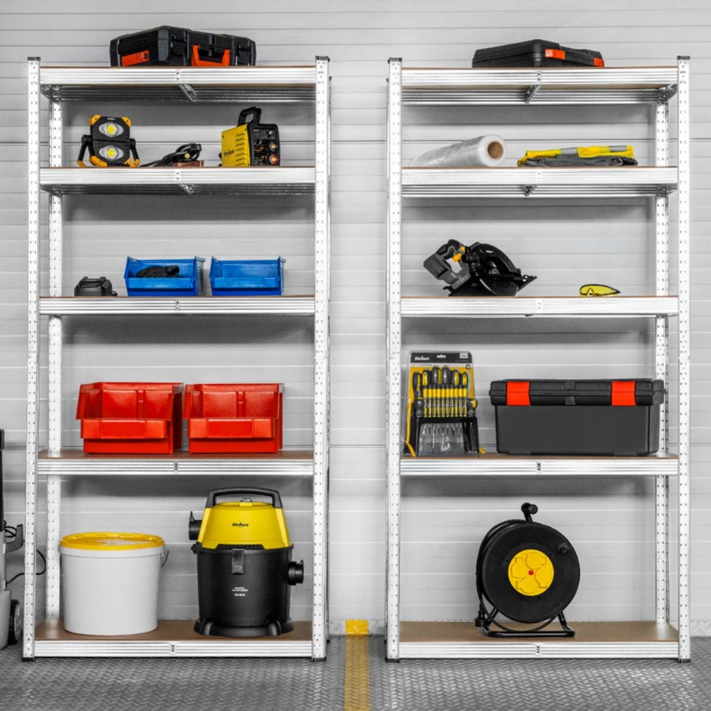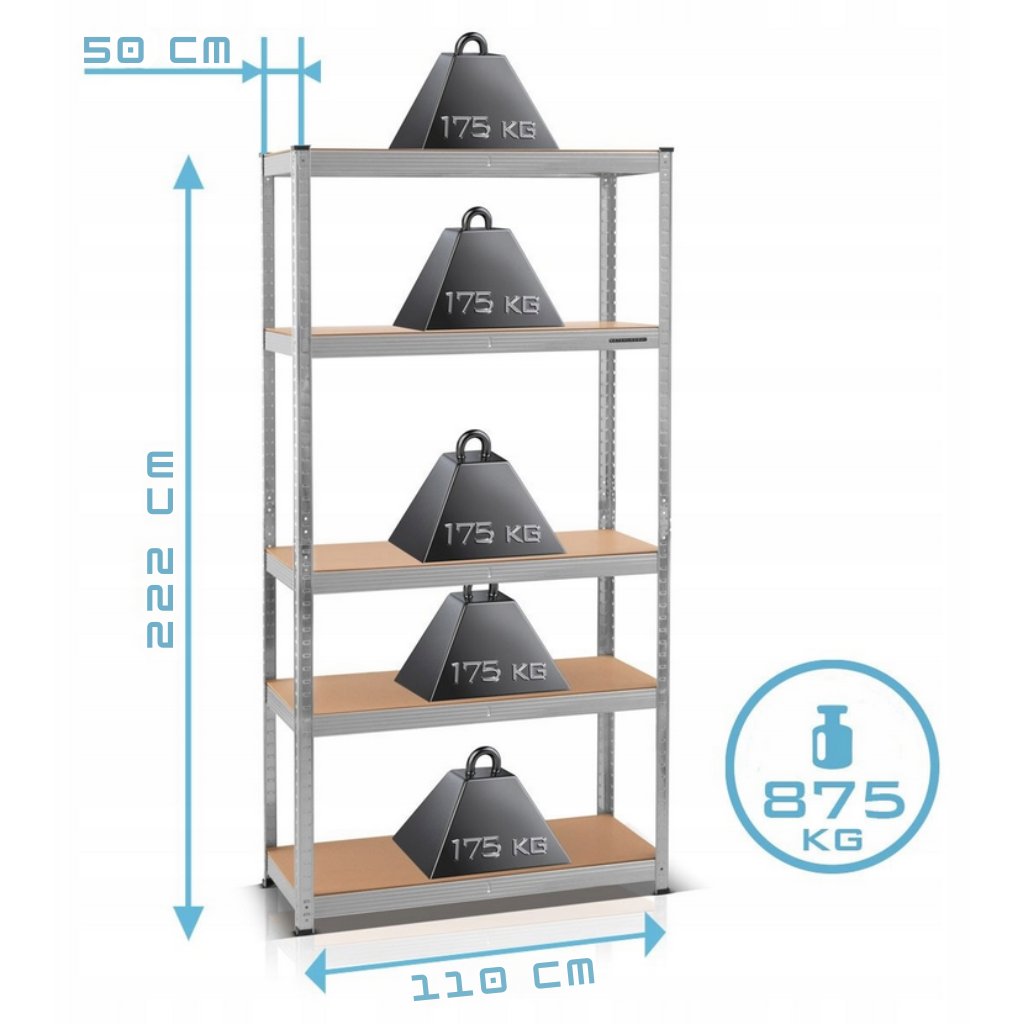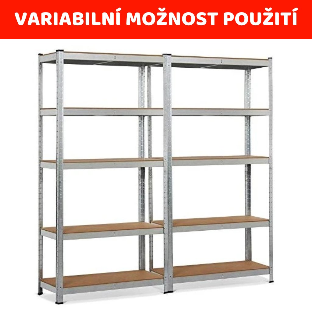5 polic a vysoká nosnost pojme vše - od nářadí po sezónní věci. Konec skládání do kouta nebo krabic pod stolem. Ideální pro ukládání všeho – od knih, přes nářadí, až po domácí potřeby.