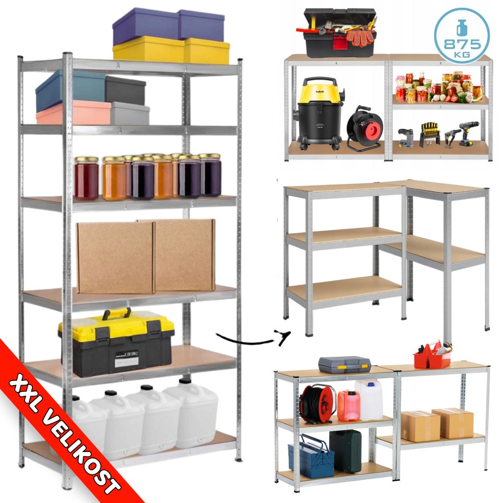5 polic s vysokou nosností pojme od nářadí po sezónní věci. Konec krabic pod stolem.