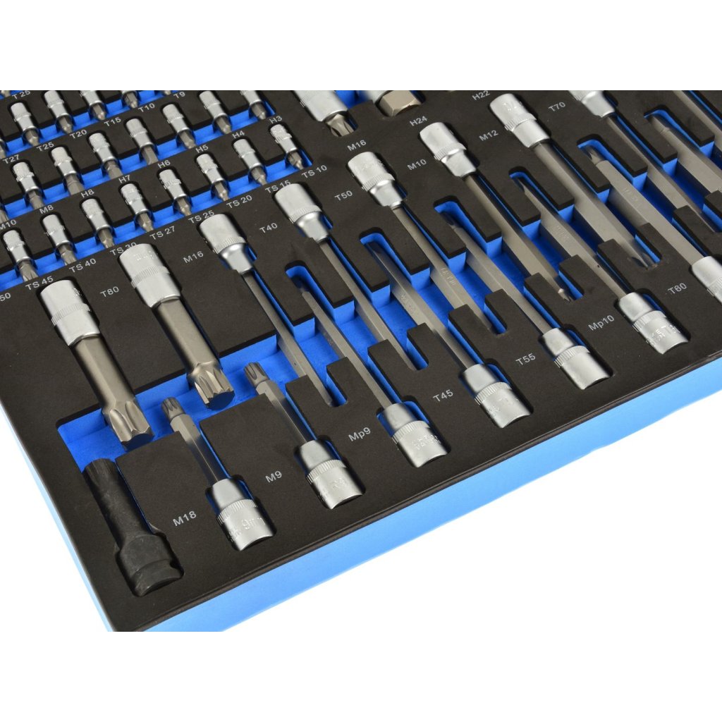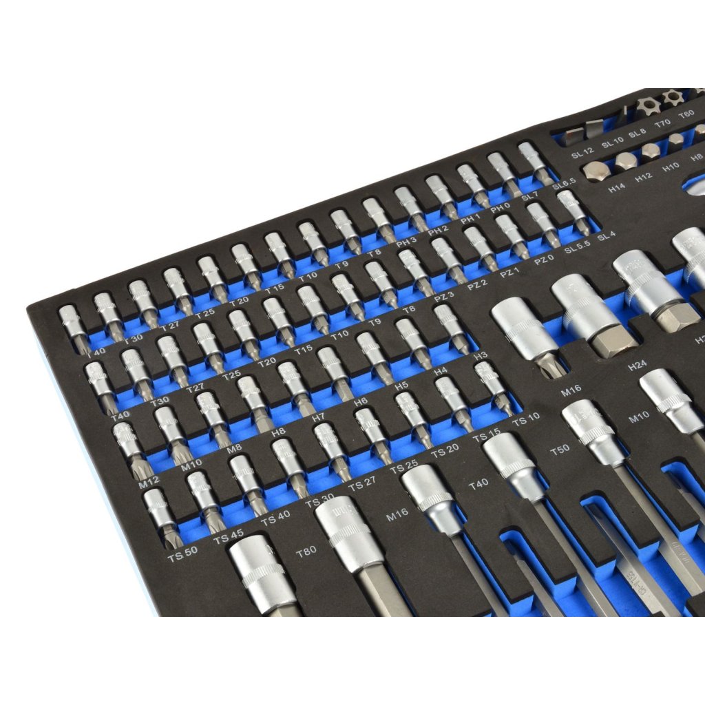 Obsah balení: 3/8" Držák bitů (délka = 31 mm) 1/4" Bity s nasadkami (délka = 37 mm) HEX: H3, H4, H5, H6, H7, H8 XZN: M8, M10, M12 Philips: PH0, PH1, PH2, PH3 Pozidrive: PZ0, PZ1, PZ2, PZ3 Ploché: 4, 5