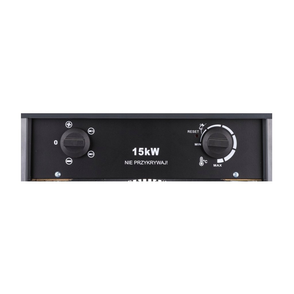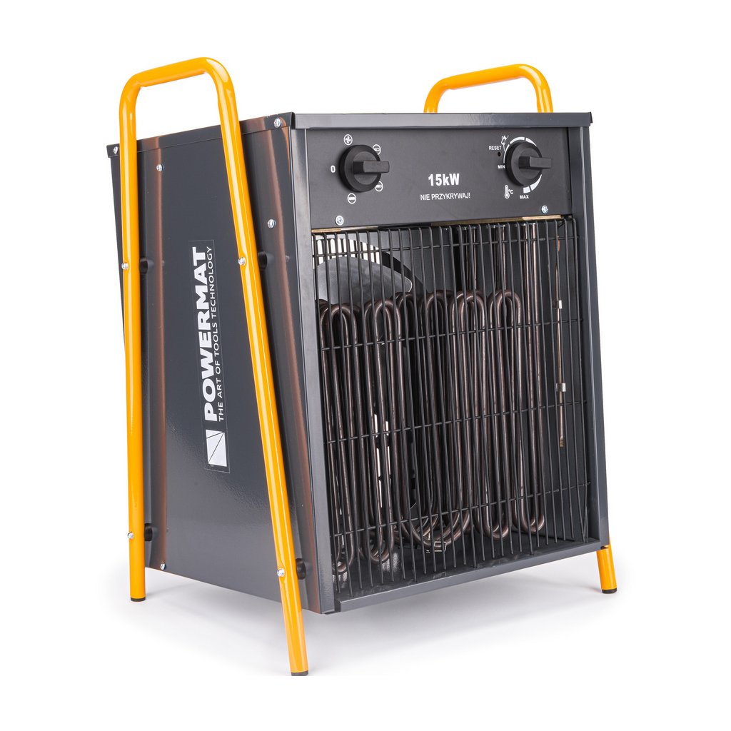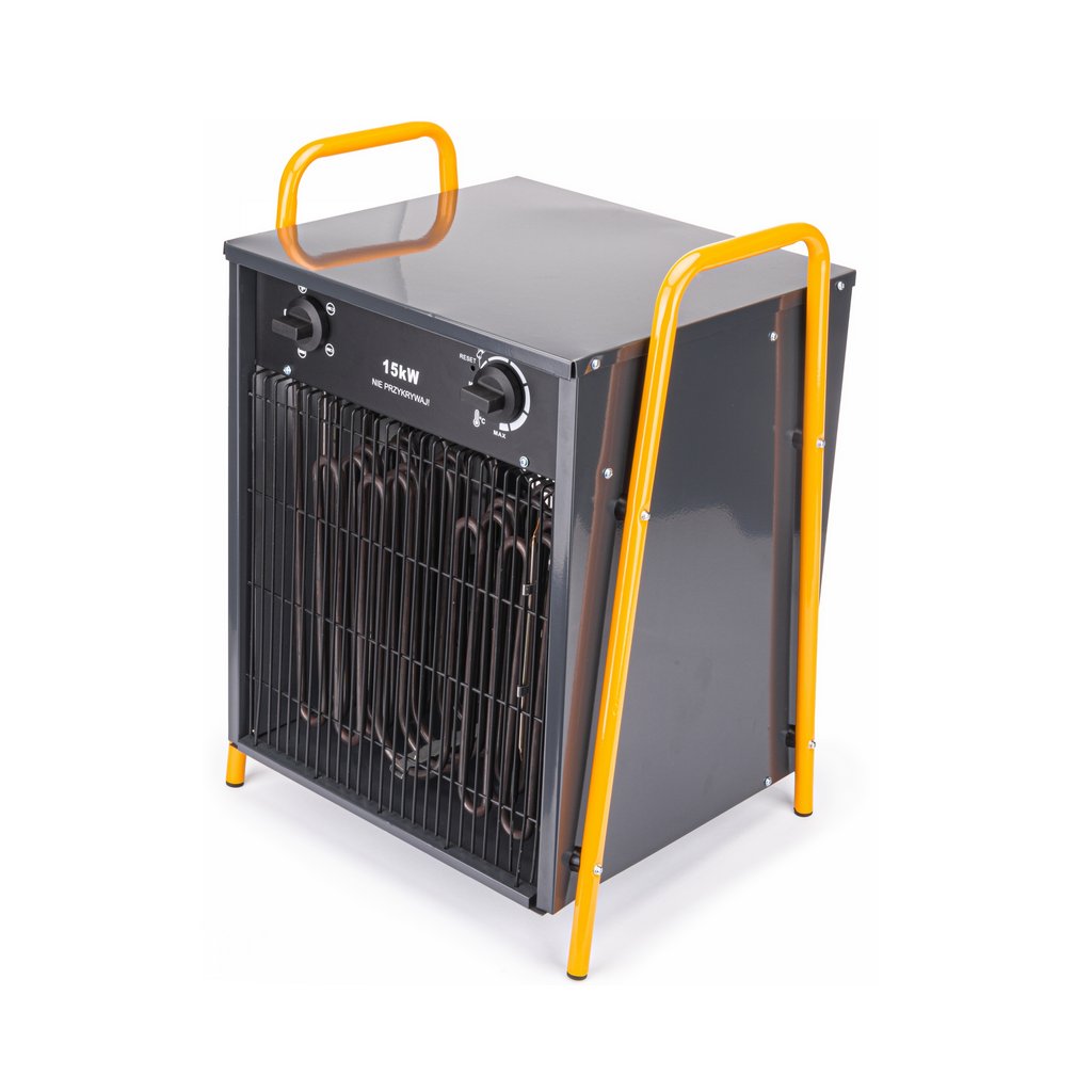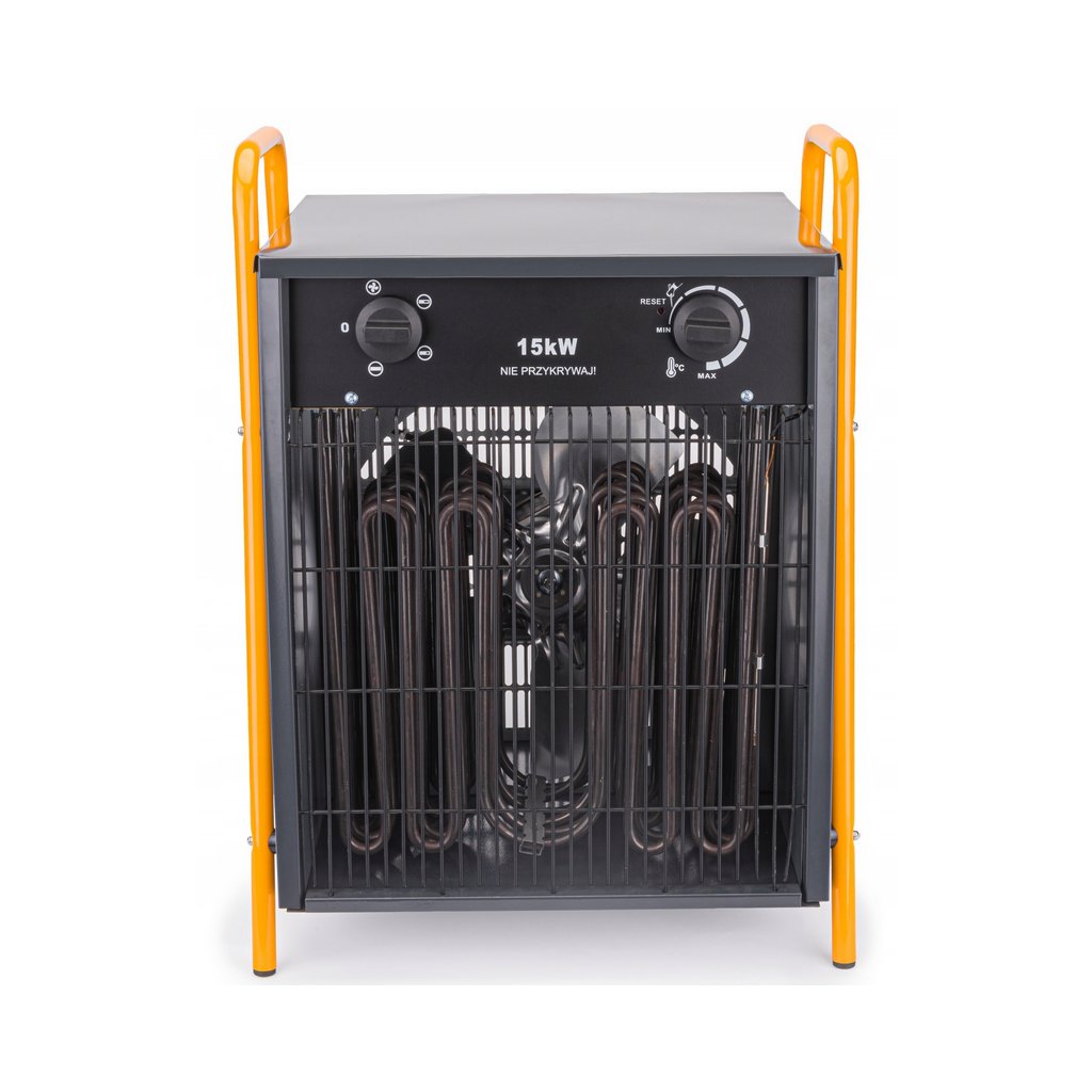 Výkonný elektrický ohřívač 15 kW, napájená třífázově 400 V, s vestavěným termostatem a ochranou proti přehřátíIdeální pro haly, sklady i dílny – silný průtok vzduchu, bez zápachu a emisí