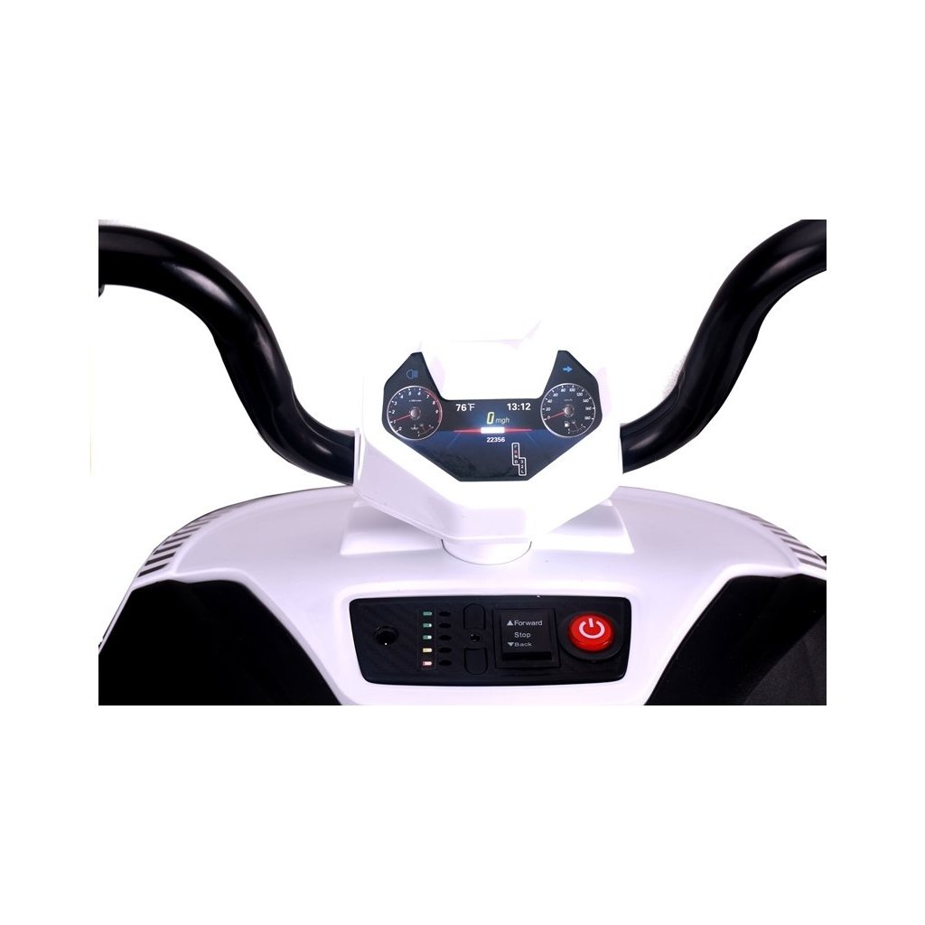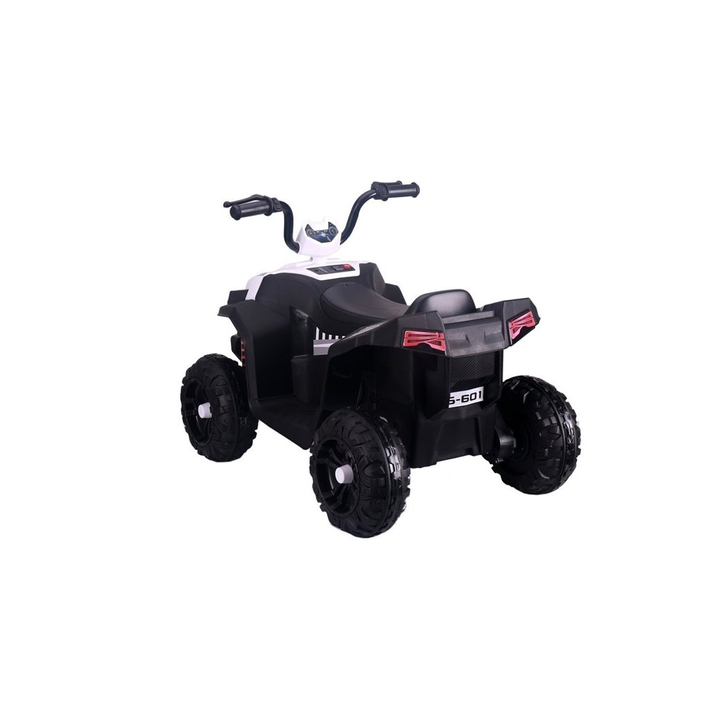 - Bílá čtyřkolka S601 na akumulátor poskytuje spoustu zábavy nejen mladému řidiči, ale i jeho rodičům