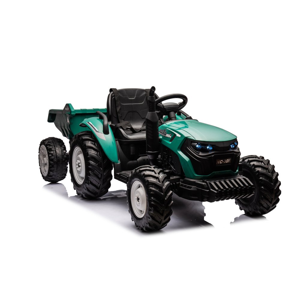 Elektrický traktor HC-306 s přívěsem v tmavě zelené barvě nabízí jedinečný zážitek pro malé milovníky traktorů Tento traktor na akumulátor je vybaven dvojicí motorů o výkonu 95W a poskytuje automobilovou automatickou převodovku s třemi rychlostmi, což zajišťuje plynulou jízdu