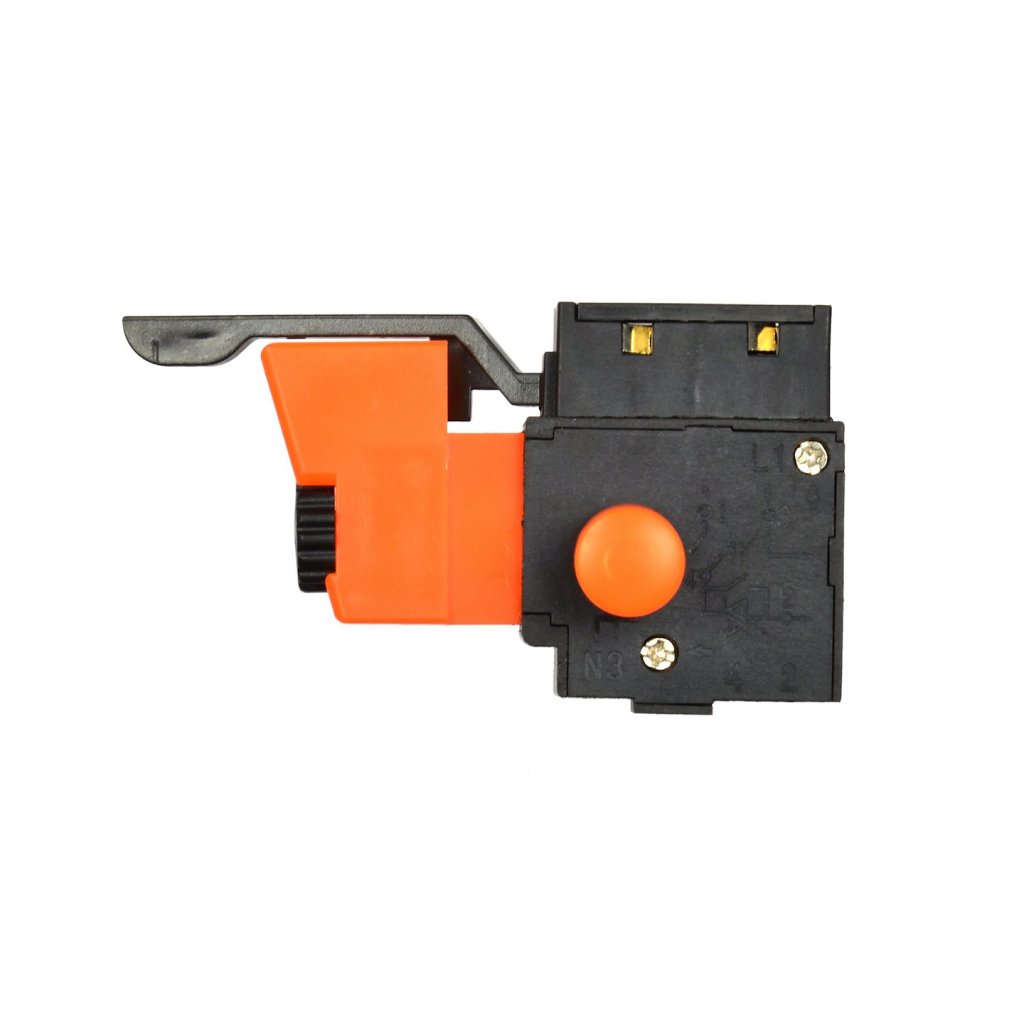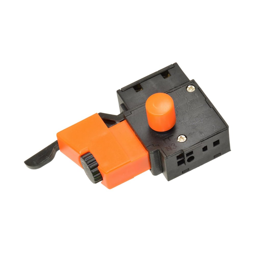 Tlačítkový spínač s regulací otáček, změnou směru otáčení vpravo/vlevo a aretací spínače v poloze trvale zapnuto.