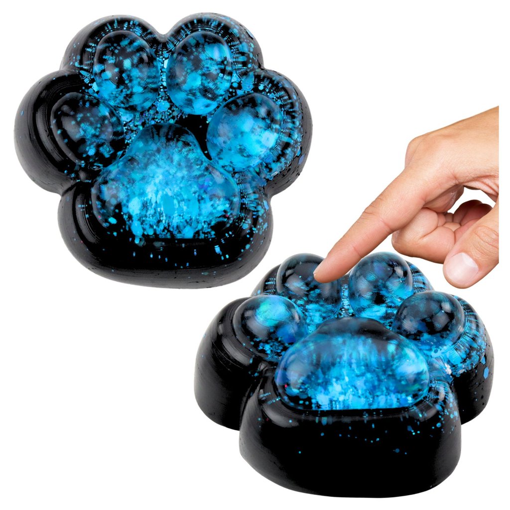 - Antistresový mačkací míč Kočičí tlapka s modrým třpytem je vynikající senzorická a antistresová pomůcka, která je vhodná pro děti i dospělé