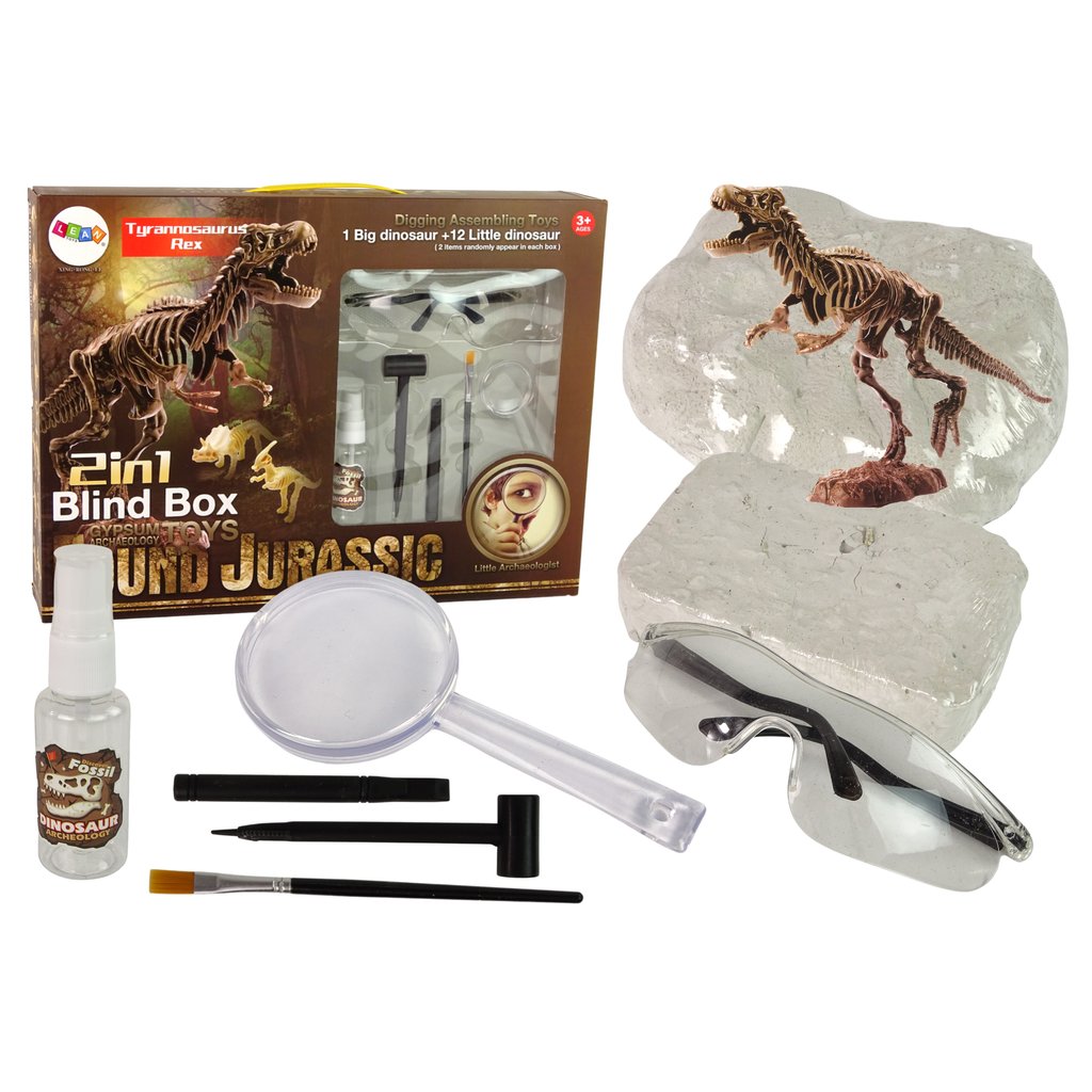 Objevte názory vašeho malého archeologa s touto úžasnou Archeologickou sadou 2v1 Dino Skelety Tyrannosaurus. Dinozaury byli jedni z nejzajímavějších prehistorických tvorů. Pokud je vaše dítě zvědavé a chce objevit minulost, tato hračka je přesně pro něj! S tímto zestavem malého archeologa může každý malý nadšenec vykopat svá vlastní prehistorická zvířata. Přiložené nástroje umožní odkrytí skeletu velkého dinosaura i dvou menších dinosaurů. Dvě skály a dvakrát tolik zábavy! Malé skelety jsou záhadné a teprve po vyčištění kostí se díky přiloženému příslušenství odhalí, jaký dinosaur se skrýval ve skále. Tato hračka pomůže vašemu dítěti nabýt znalostí a rozvíjet přesnost během vykopávek a fantazii při skládání. Vaše dítě se stane skutečným paleontologem s využitím nástrojů a technik!