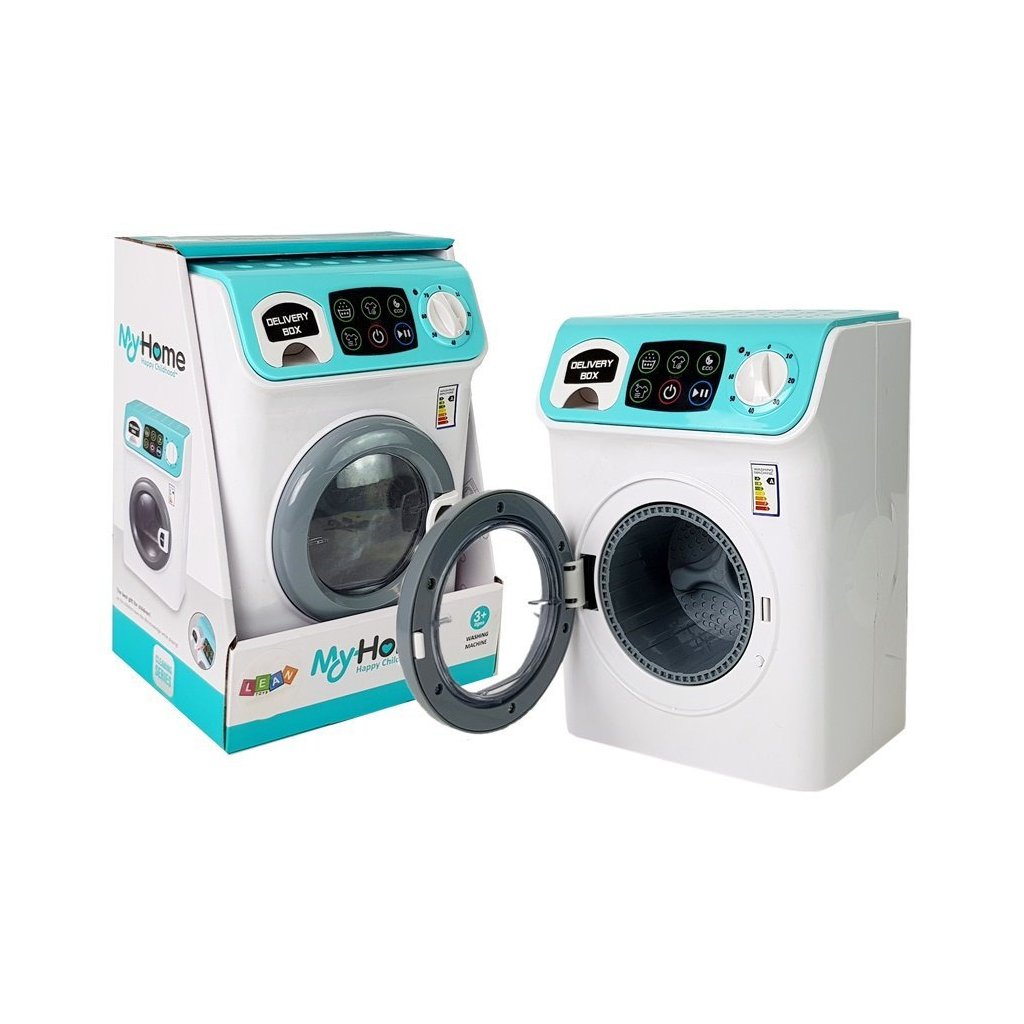 - Tato praktická hračka v elegantním designu bílo-mátové barvy nabízí otevíratelný buben, výsuvnou zásuvku na prášek a dotykový ovládací panel