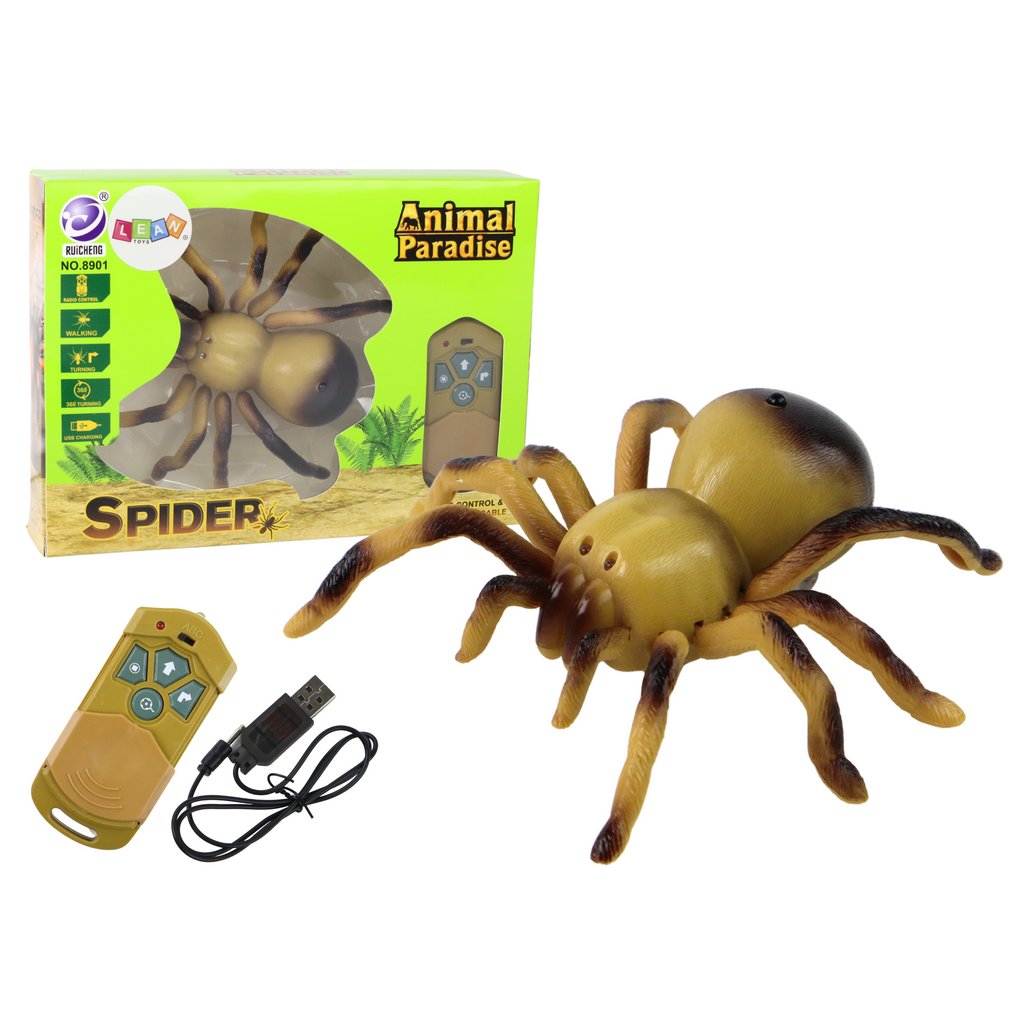 Tento žluto-hnědý pavouk, připomínající skutečnou tarantuli, se rychle pohybuje, otáčí a točí se kolem své osy Díky svítícím očím a pohyblivým končetinám je hraní s ním opravdovým potěšením