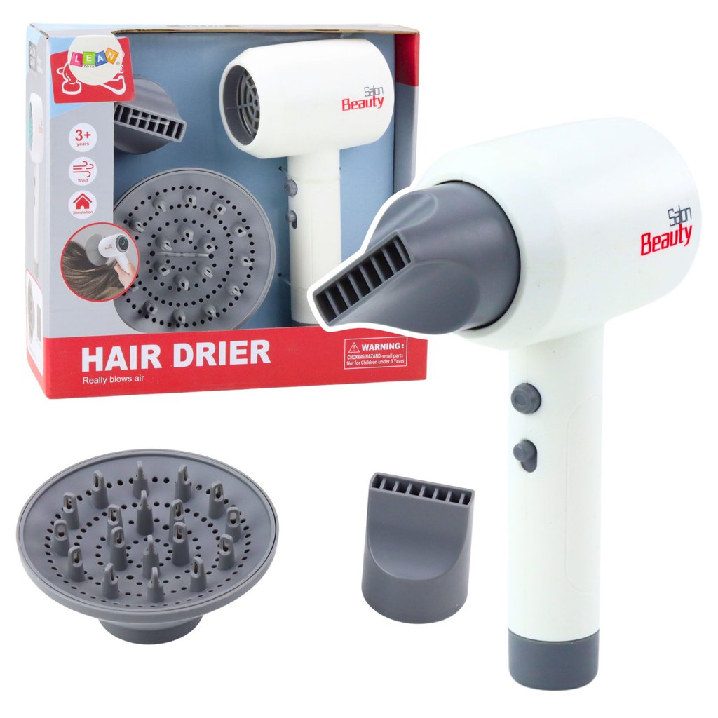 Zařízení imituje skutečný fén, což umožňuje dětem cítit se jako opravdoví kadeřníci Unikátní design, klasická barevnost a precizní provedení činí z produktu ideální doplněk k dětským hračkám pro hraní doma, v salonu krásy nebo při stylizaci panenek