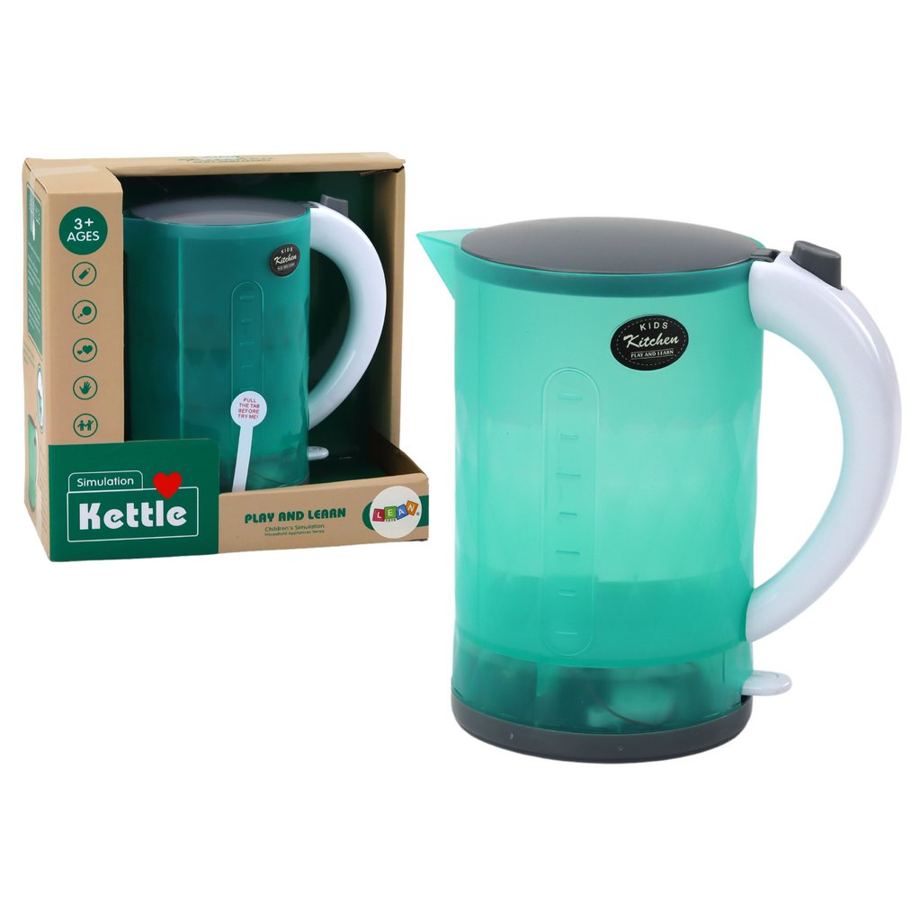 Elektronická konvice na baterie Světla Zvuk Domácí spotřebiče Zelená Neobyčejný elektrický čajník v jedinečné zelené barvě! Naše konvice není jen atraktivní hračka, ale také skutečná atrakce v dětské kuchyni