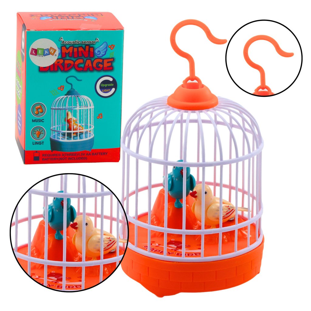 Klec s Ptáčky na Baterie Světla Zvuky Oranžová