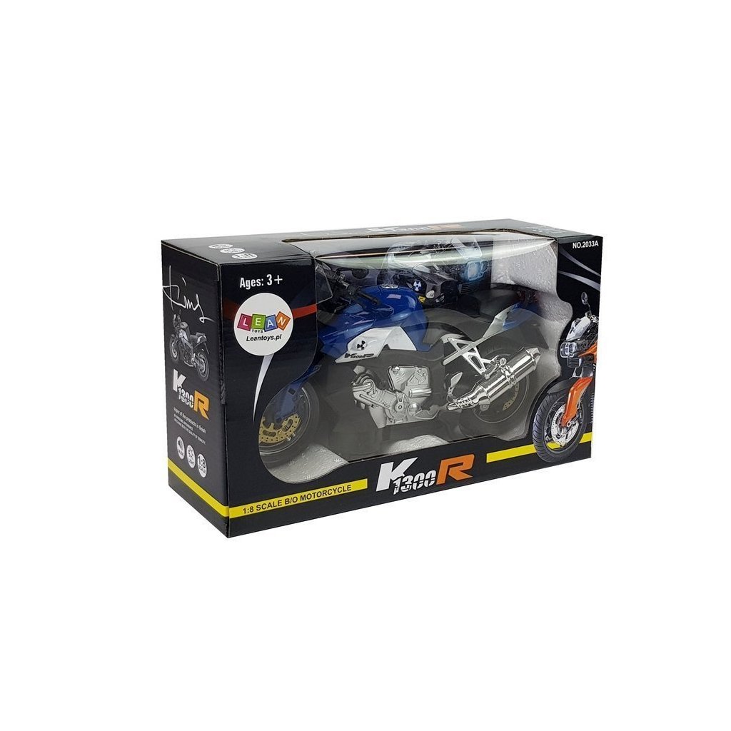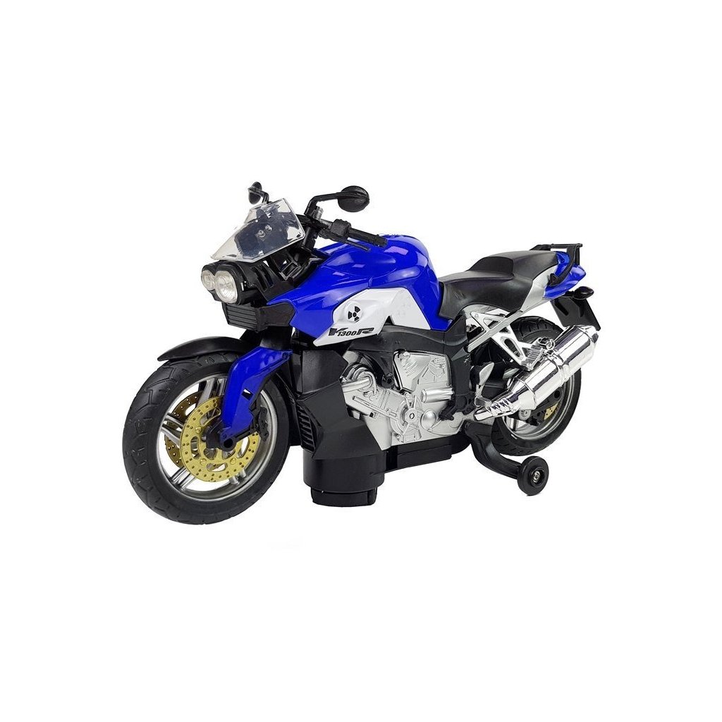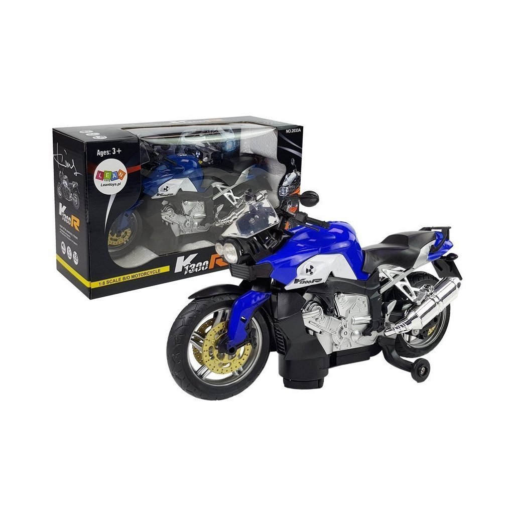 Probudí jeho vášeň Motocykl má aerodynamický tvar, po stranách jsou namontována malá kolečka, která zajišťují stabilitu a hračka se udržuje ve svislé poloze