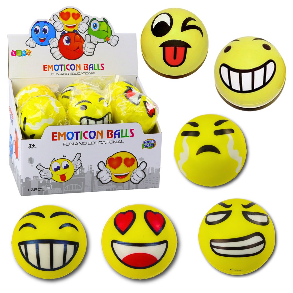 - Pěnový míček s emotikony o průměru 10 cm je veselý, barevný míček s motivem zábavných emotiků, který je ideální pro děti, které milují aktivní hru a smích