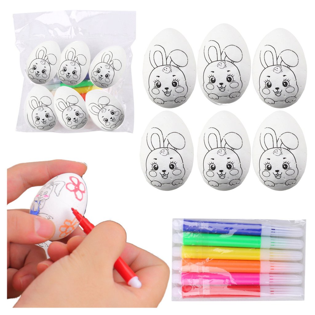 Polystyrenová Velikonoční Vajíčka pro Malování - Králíčkový Vzor, 6 ks