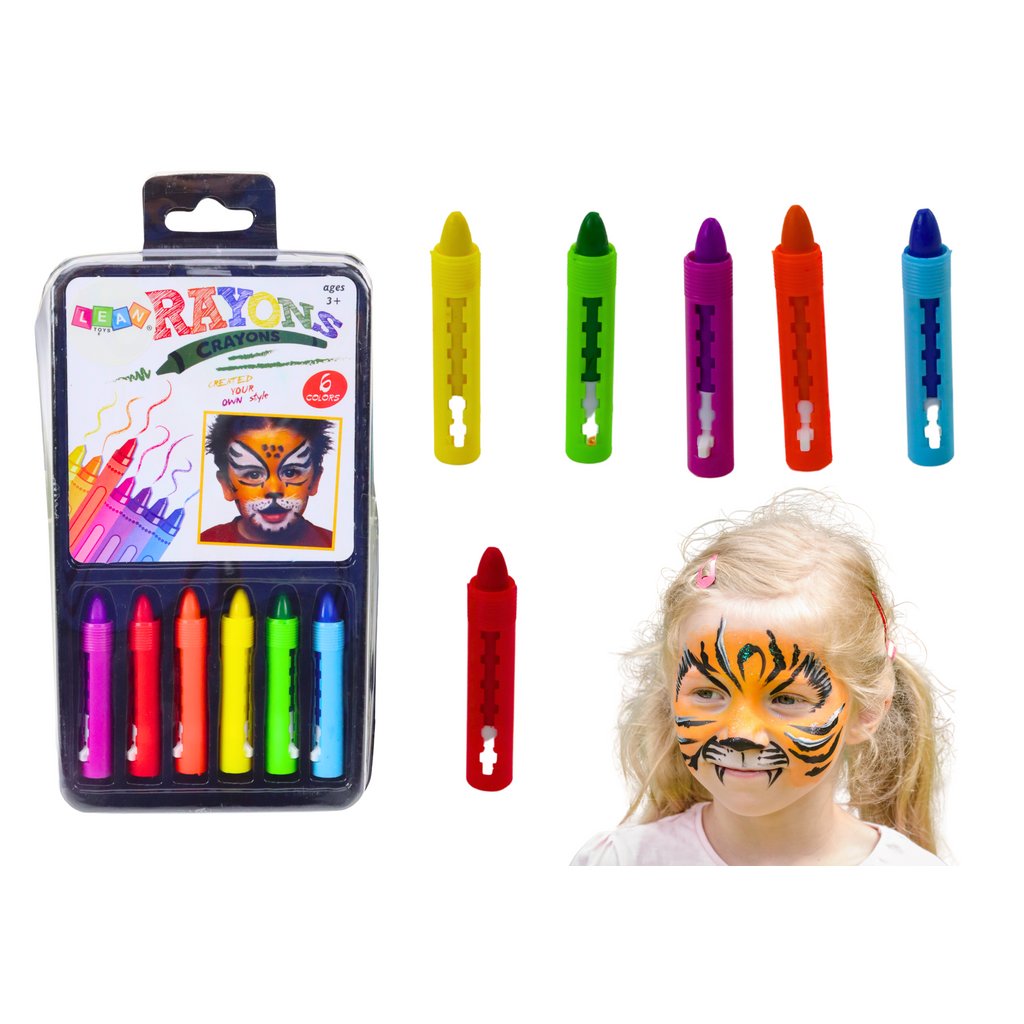 Sada pastelek na malování obličeje barevné 6 kusů Sada pastelek na malování obličeje je skvělou volbou pro rodiče, kteří chtějí svým dětem zajistit kreativní a bezpečnou zábavu.