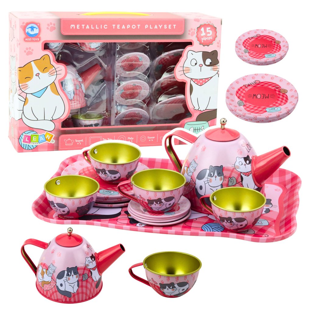 - Kovový čajový set pro děti s motivem koček Připravte své dítě na neobyčejný svět hry na domácí čajové večírky s tímto roztomilým kovovým čajovým setem