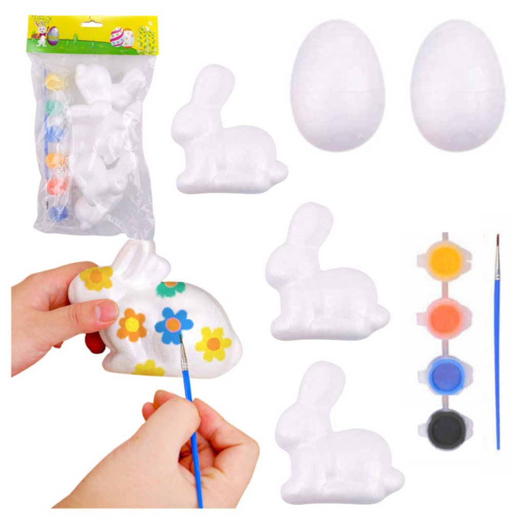 Sada na malování polystyrenových ozdob 3 zajíčci 2 vajíčka barvy