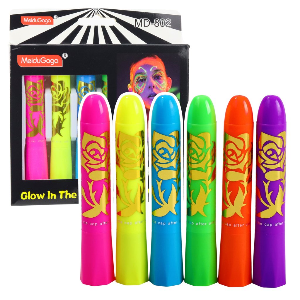 Sada na Malování Tváře Fixy Tužky Neonové UV Fluorescenční 6ks