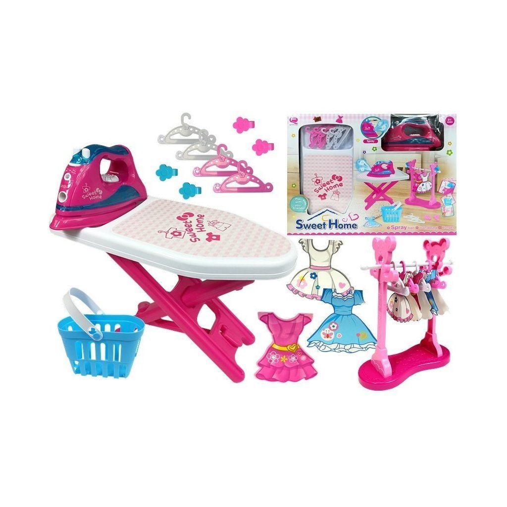 - Růžová žehlička, žehlící prkno a ramínka Několik let staré holčičky, které pozorují domácí práce, často chtějí pomáhat svým rodičům