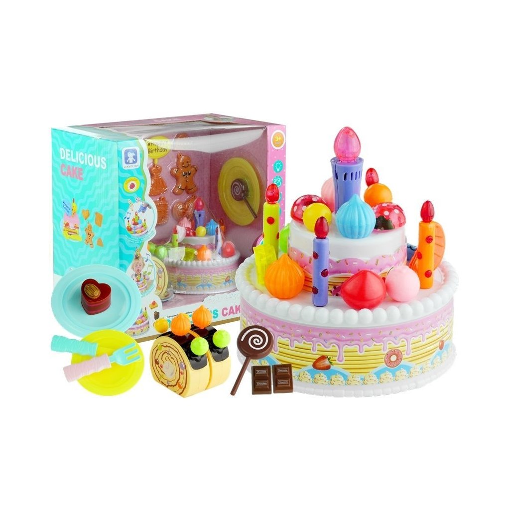 - Obsahuje velkou sadu předmětů včetně dortu, sušenek a dalších sladkostí, aby oslava byla plná emocí a fantazie