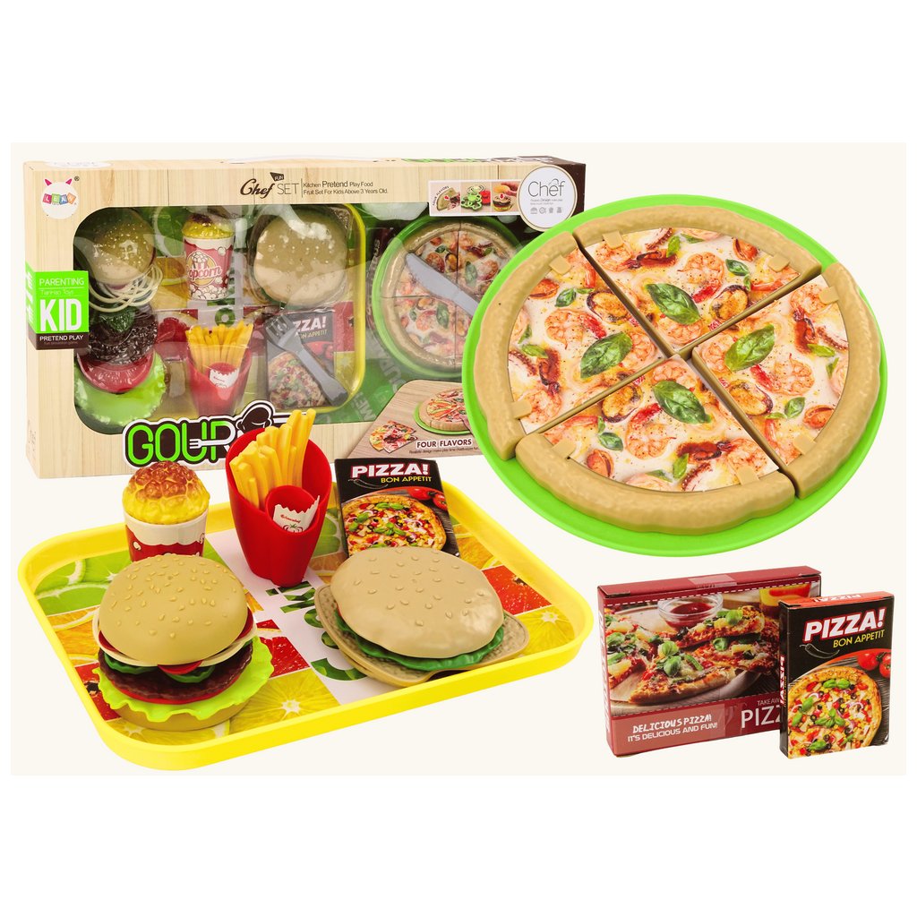 Sada s Rychlým Občerstvením Pizza Burgery Hranolky Příslušenství pro Děti 24 ks