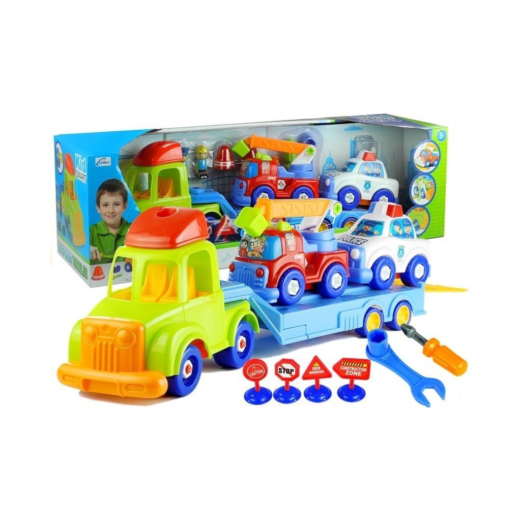 - Sada vozidel Policie, hasiči, odtahovka, rozebíratelná Prezentovaná sada se skládá z vozidel