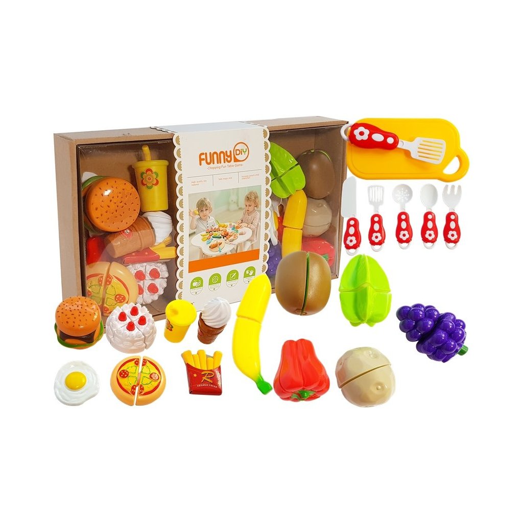 Sada ovoce a zelenina na krájení Naše sada je další atrakcí při hraní na obchod nebo restauraci pro vaše dítě Každý z produktů je dokonalou kopií skutečných potravin, díky čemuž se malý kuchař naučí jejich názvy a vzhled
