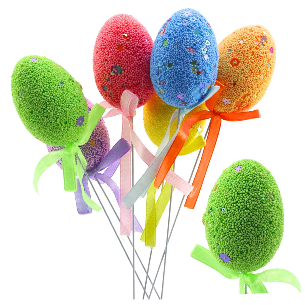 Velikonoční vajíčka na drátku jsou perfektním způsobem, jak ozdobit váš domov během velikonočních svátků Každé vajíčko je pečlivě ozdobeno styroporovými kuličkami a malými vzory, které mu dodávají výjimečný charakter