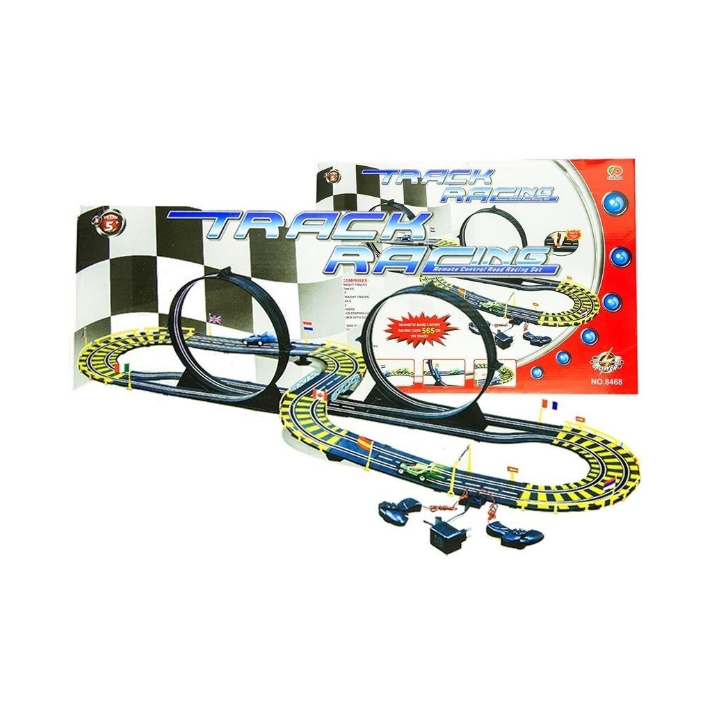 Autodráha Track Racing Dvě auta 565 cm Autodrom o délce 565 cm s okruhy, síťovým napáječem 220 V a bariérami, které zabraňují vypadnutí autíček.