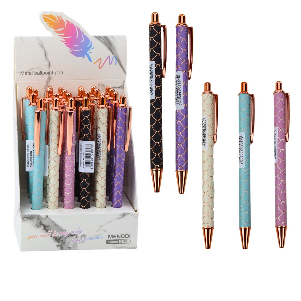 Kovové automatické pero s efektem rybích šupin je elegantní a moderní doplněk, který se hodí do každé kanceláře, školy nebo k běžnému dennímu použití.