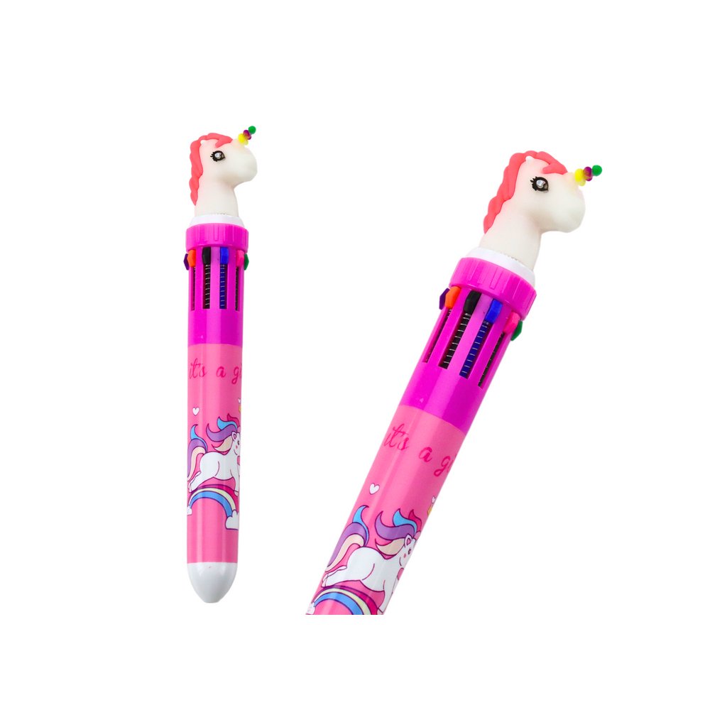 Toto funkční automatické vícebarevné pero vnáší do psaní zábavu i praktičnost, protože nabízí až 10 barev v jednom psacím nástroji Pero je ozdobeno kouzelným motivem jednorožce, který jistě přitáhne pozornost dětí a učiní každodenní psaní vzrušujícím