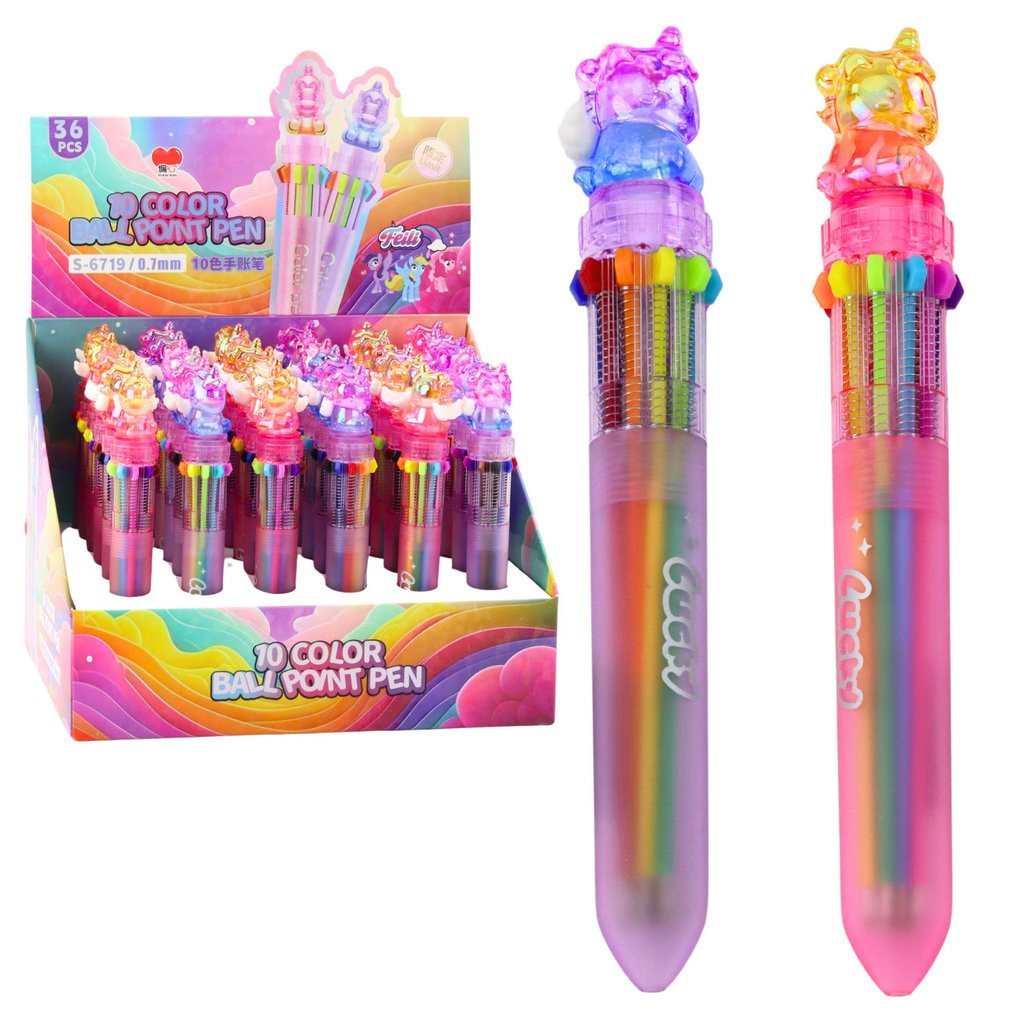 Automatické vícebarevné pero s jednorožcem 10v1 – pro děti je perfektním doplňkem pro každé dítě, které rádo používá barevné školní potřeby a kreativně si hraje.
