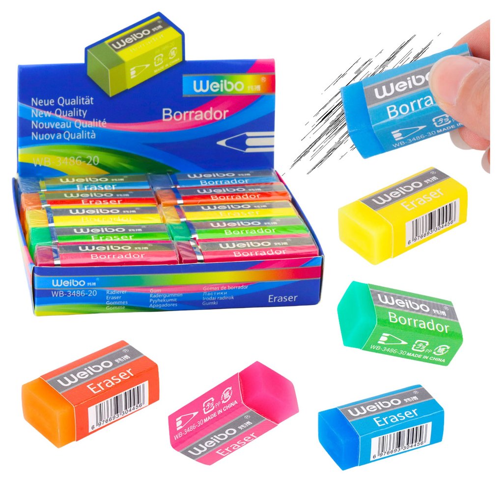 - Barevná gumovací guma Weibo WB-3486-20 je praktickým a estetickým doplňkem pro každou školní nebo kancelářskou sadu