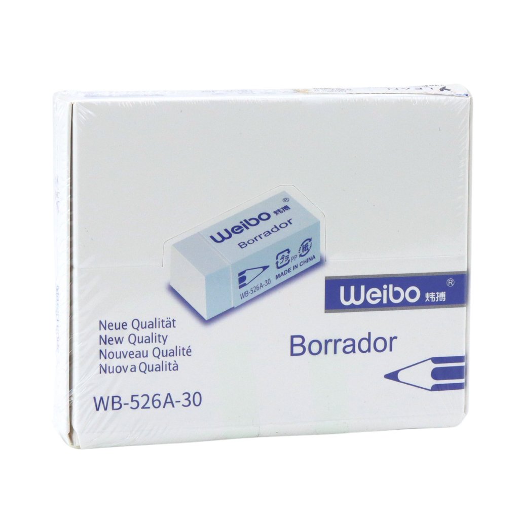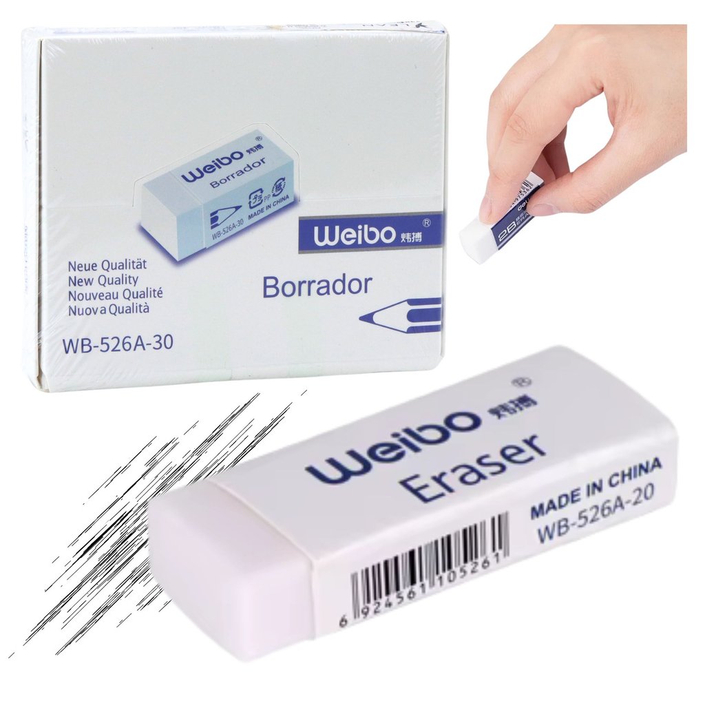 Guma na mazání WEIBO WB-526A-30 je funkční školní a kancelářská pomůcka, která je nezbytná v každé sadě školních a kancelářských potřeb Tato guma, vyrobená z vysoce kvalitního, měkkého materiálu, efektivně odstraňuje stopy tužky z papíru, aniž by poškozovala jeho povrch