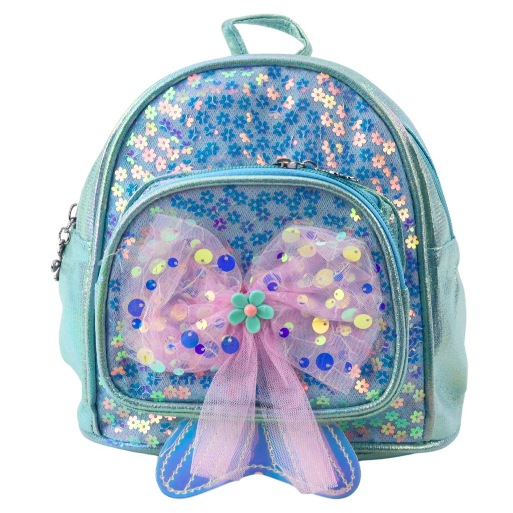 - Dětský modrý batoh s mašlí je okouzlující a funkční doplněk pro každou malou princeznu