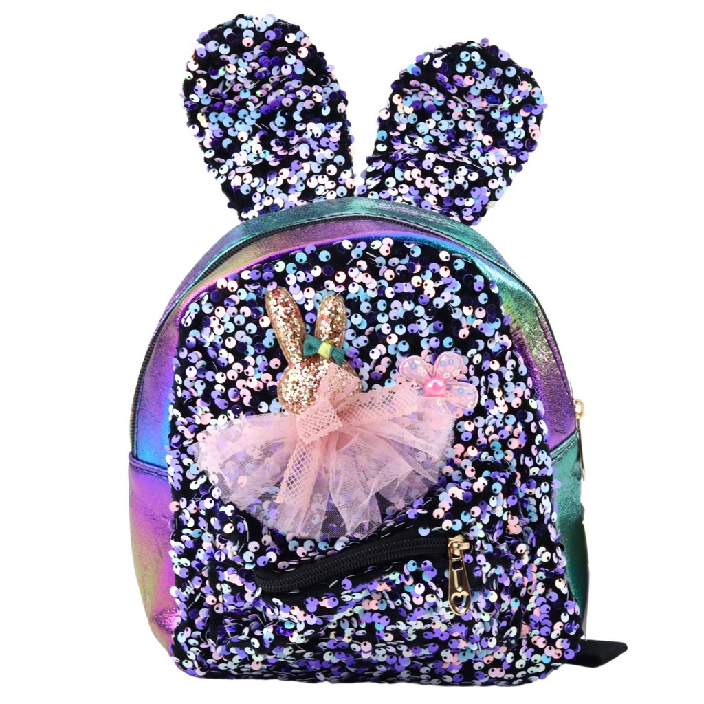 Dětský Batoh S Flitry a Králičími Ušima Tmavě Barevný 22cm 4.4L
