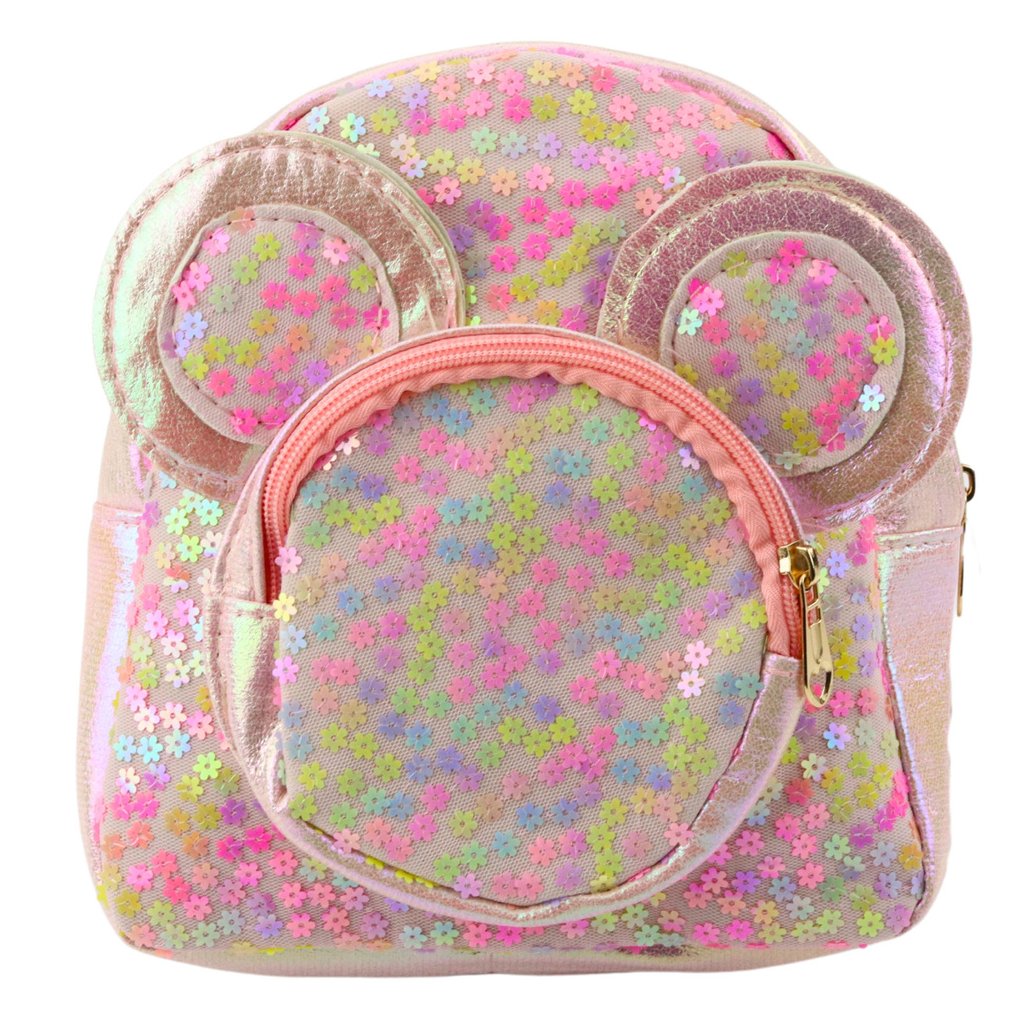 Dětský batoh s flitry a uši myšky – růžový je okouzlující volbou pro dívky, které si cení barevného a jedinečného stylu.