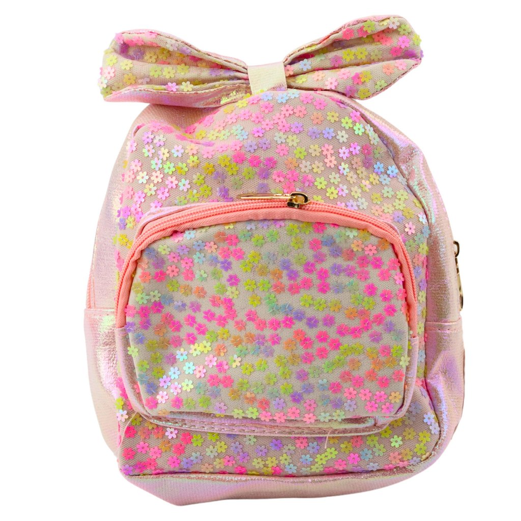Dětský Batůžek S Flitry A Kytičkami Mašlička Světle Růžový 22cm 2,8L