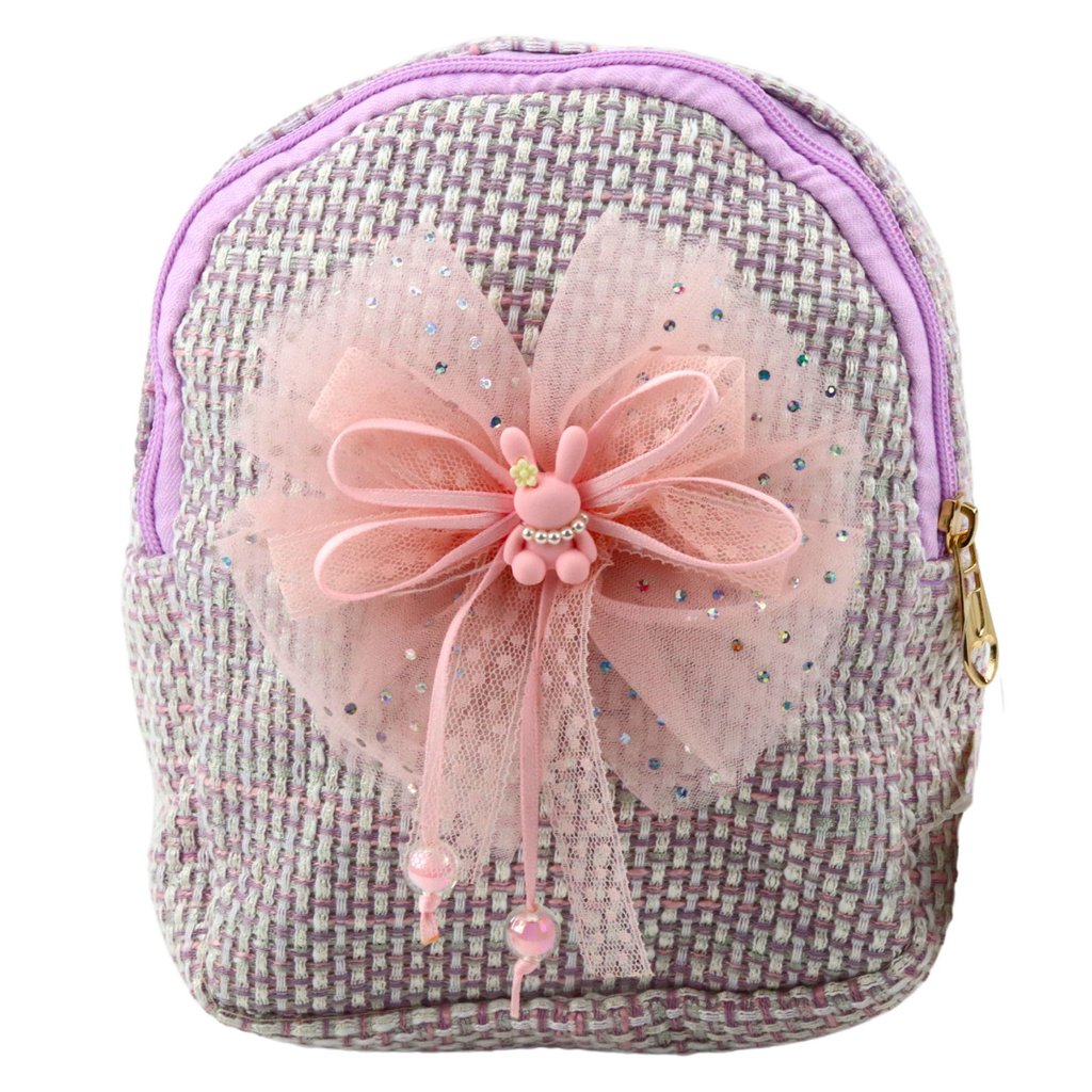 - Tento fialový ruksak s mašlí a králíčkovým přívěskem vyniká svou elegancí a moderním designem, díky čemuž je ideální nejen na krátké výlety, ale i pro každodenní použití