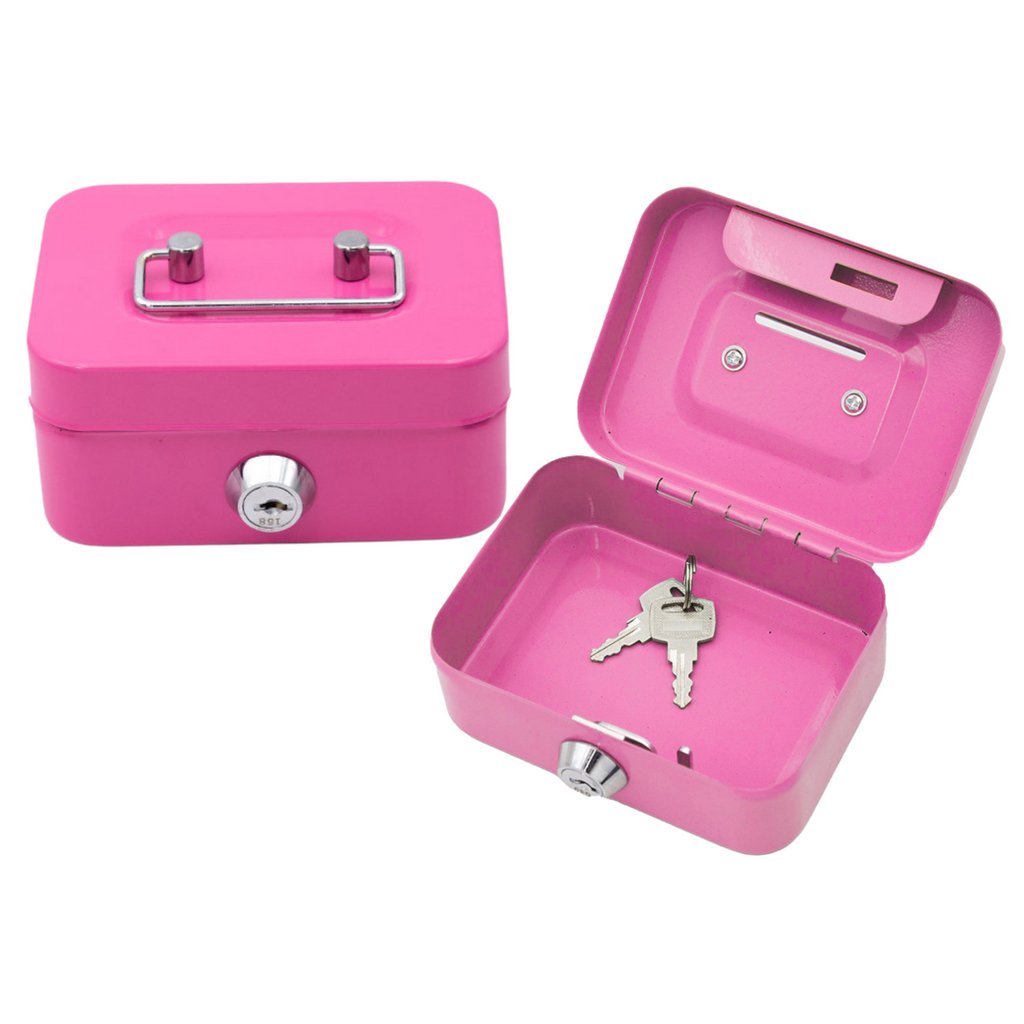 Kovová růžová pokladnička s úložným prostorem na dva klíče je nejen praktickým schováním, ale i edukativním nástrojem pro děti a dospělé Vyrobená z trvanlivého kovu v elegantní růžové barvě, kombinuje funkčnost a estetický vzhled