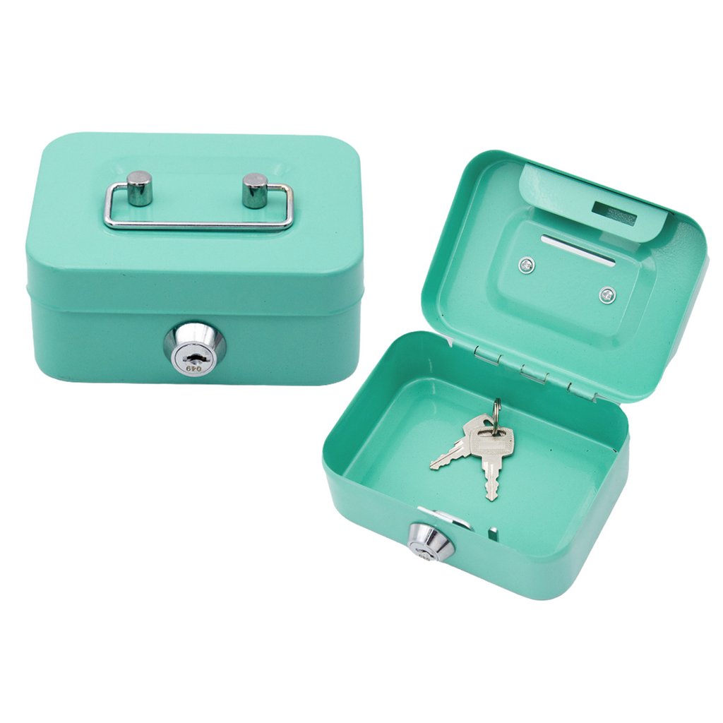 Kovová Turquoise Pokladnička Skladiště Zamykací s Dvěma Klíči
