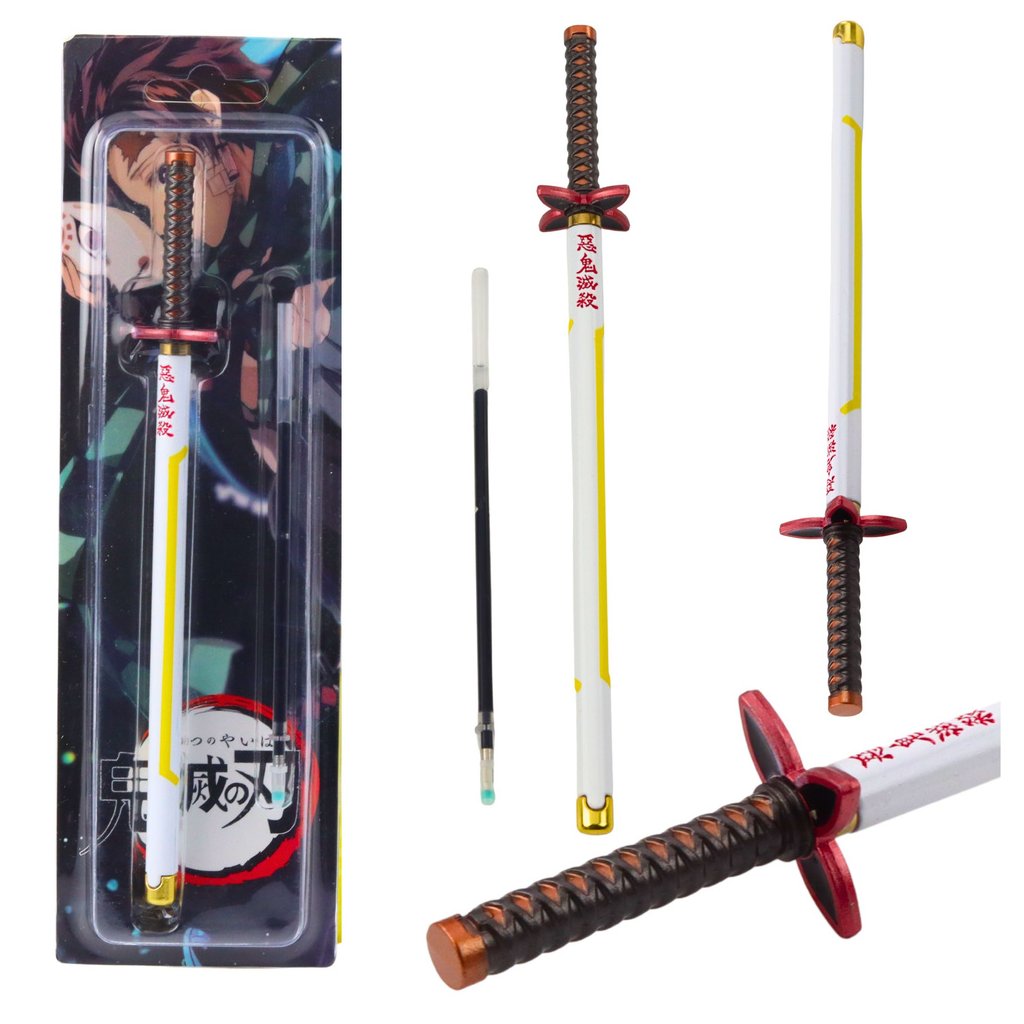 Kuličkové pero Katana Anime Kovové Černý Inkoust Vyměnitelná Náplň Bílo-Žluté